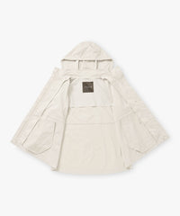 リサイクルポリエステルを76.5%使用し、ナチュラルな風合いに仕上げた素材です。独特の膨らみ感と滑らかなタッチが特徴で、はっ水加工も施しています。