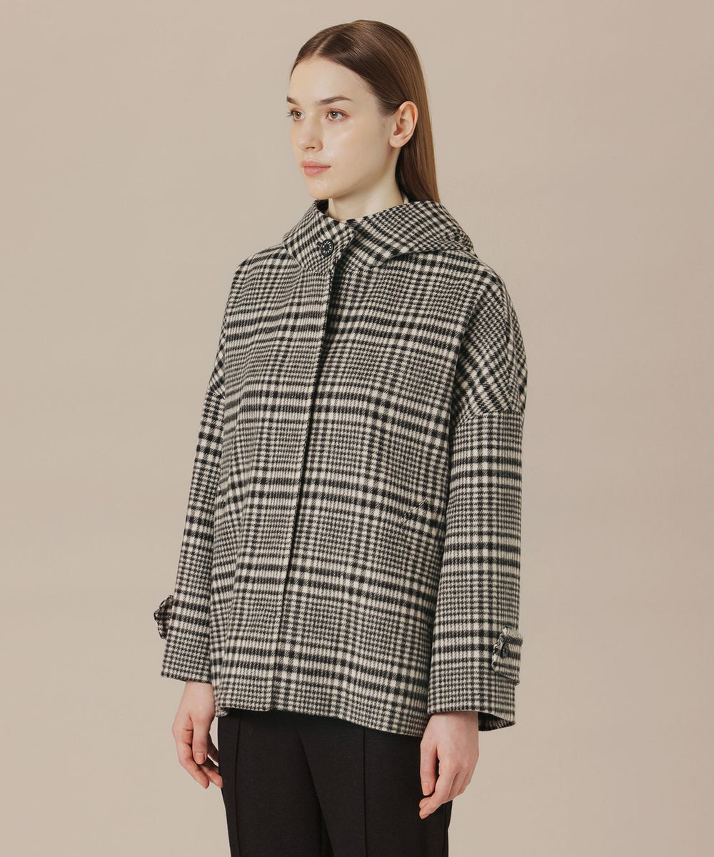 MACKINTOSH LONDONの定番モデル「ROSLEY/ロズリー」のフーデットショートコートです。ドロップした肩、裾に向けて広がる優雅なシルエットはインナーやボトムを選ばず、どなたが着ても様になるコートです。総裏地付きです。同素材のステンカラーコート(品番:G5B09657)もご用意しております。