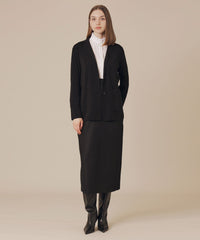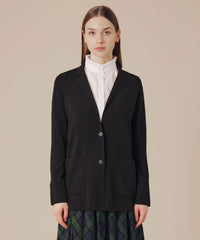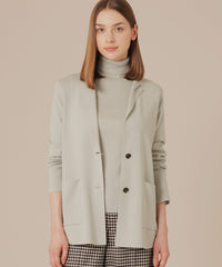 綺麗な表面感が上品な印象のニットジャケットです。季節の変わり目の羽織りとして、ニットの着心地良さにきちんと感も備え、着回し力抜群のアイテムです。裏地なしです。同素材のタートルネックプルオーバー(品番:G5N06601)や、ブラウス、Tシャツとのコーディネートがお勧めです。