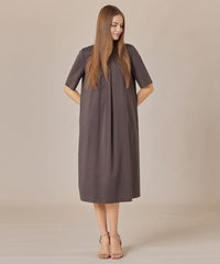 5分袖で春から秋にかけ着用頂けるシャープでエレガントな印象のワンピースです。裾、袖口は折り上げ接着する仕立てと、生地自体の伸縮性で身体に馴染みやすいアイテムです。