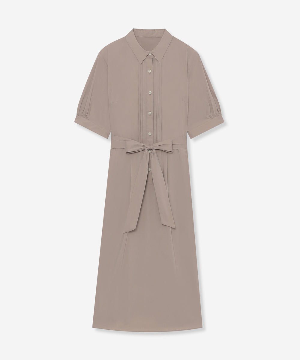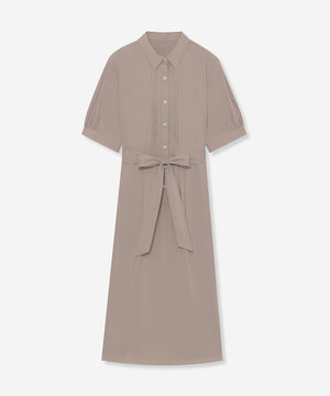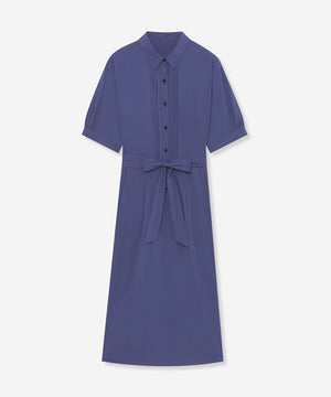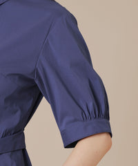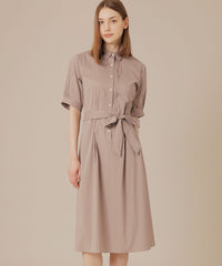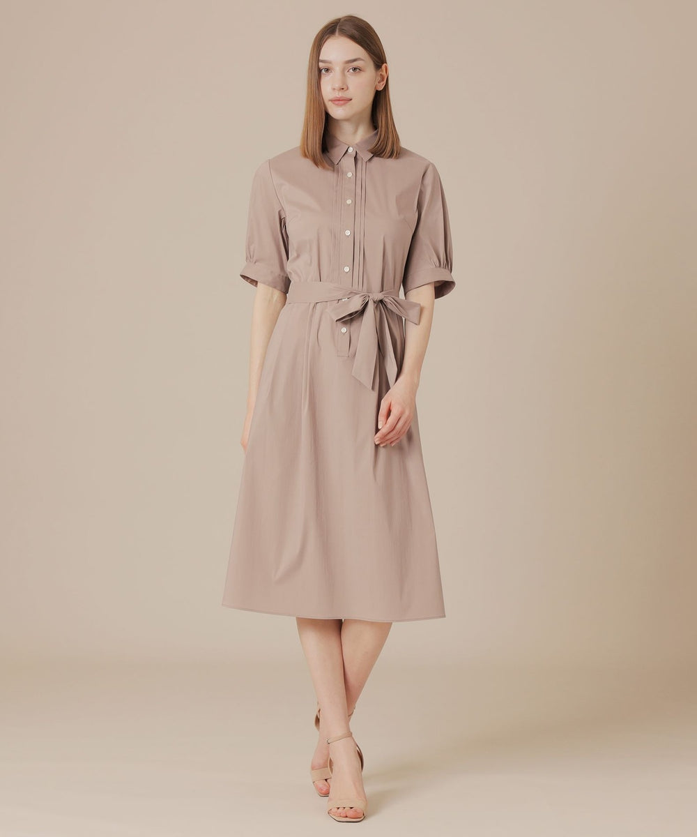 ウエストからタックでフレアに広がる上品な表情のワンピースです。きちんと感のあるシャツカラーでお食事会などのシーンにも活躍します。アンダースカート付きです。同素材のデザインシャツ(G5M12603)もご用意しております。