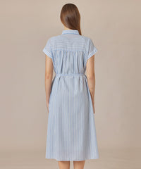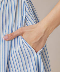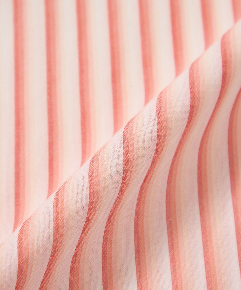 上質な原料を使用した超強撚糸による独特なシャリ感とさらっとした風合いが特徴のボイル素材です。グラデーションカラーのストライプで立体感を楽しめる柄です。