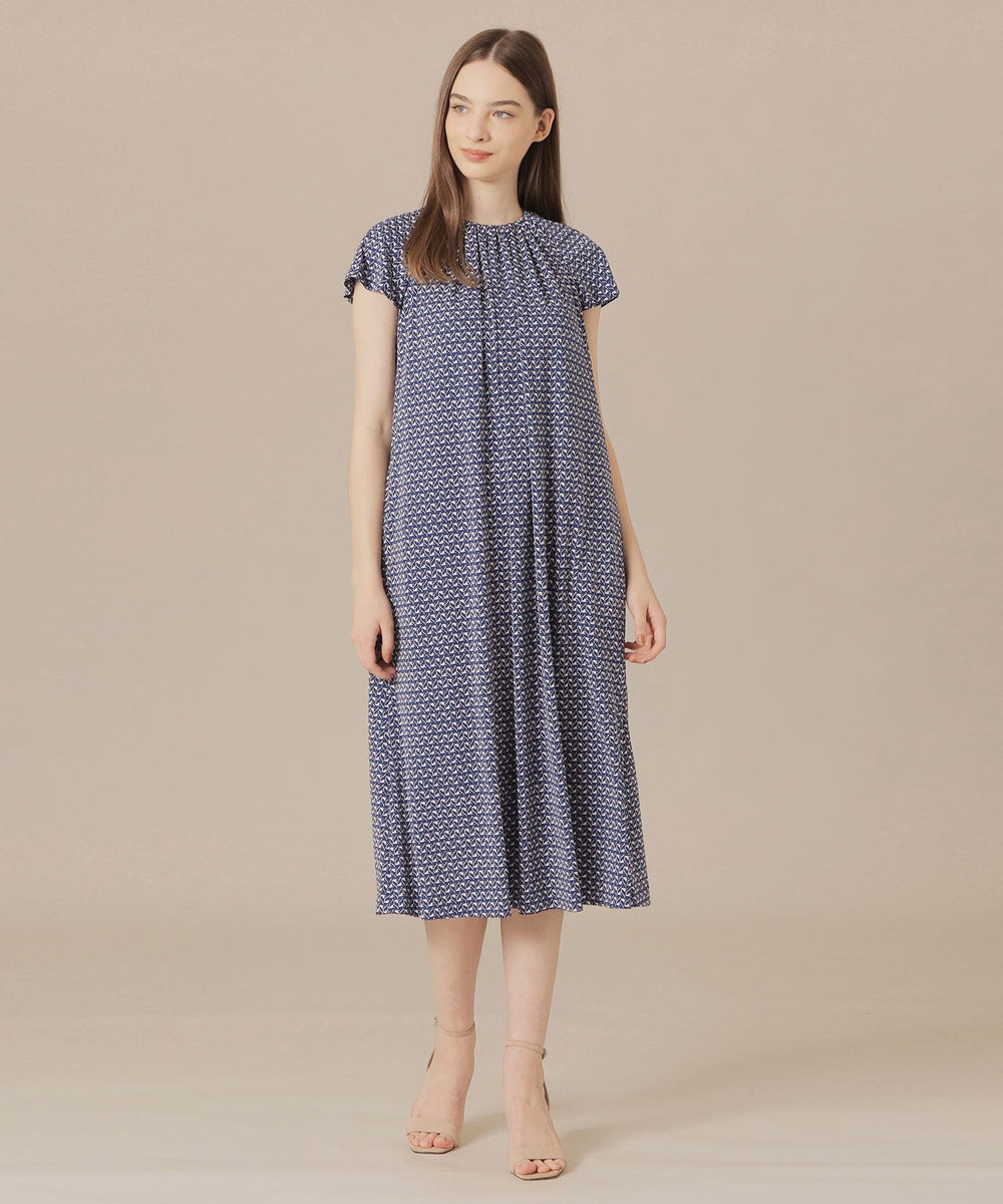 コンパクトな衿ぐりにたっぷりとギャザーを施したワンピースです。落ち感のある素材で、ゆったりしながらも広がり過ぎないきれいなシルエットです。さらっとした素材で暑い時季に快適なサマードレスです。アンダースカート付きです。同素材のブラウス(品番:G5M64586)、スカート(品番:G5S63586)もご用意しております。