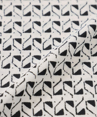 さらっとしたクリアなタッチで爽やかな着心地のジャージ素材に、ヴィンテージ風の幾何柄模様をプリントした生地です。