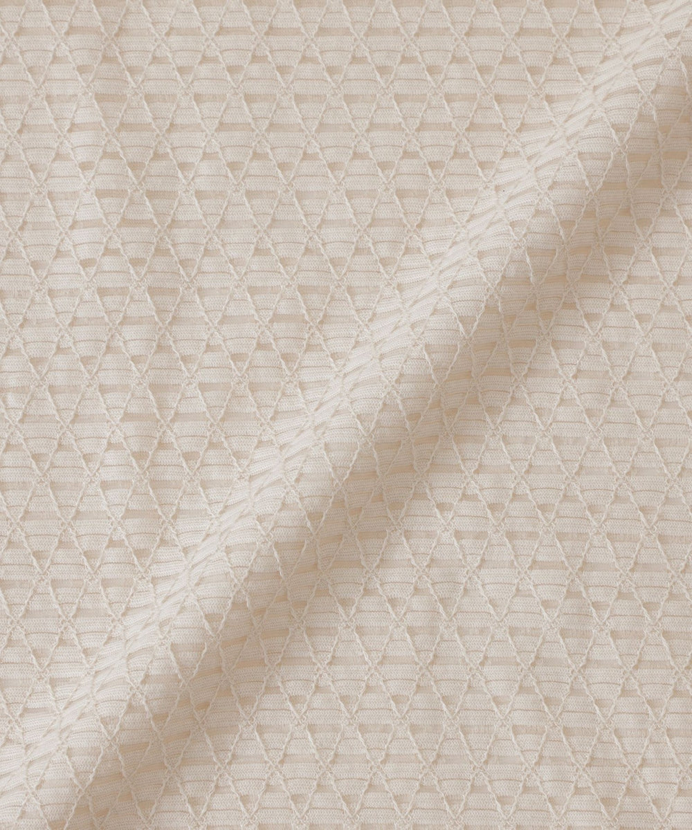 綿に極細のナイロン糸を使用し、透け感のあるアーガイル柄をコードレース調に表現したジャカード素材です。