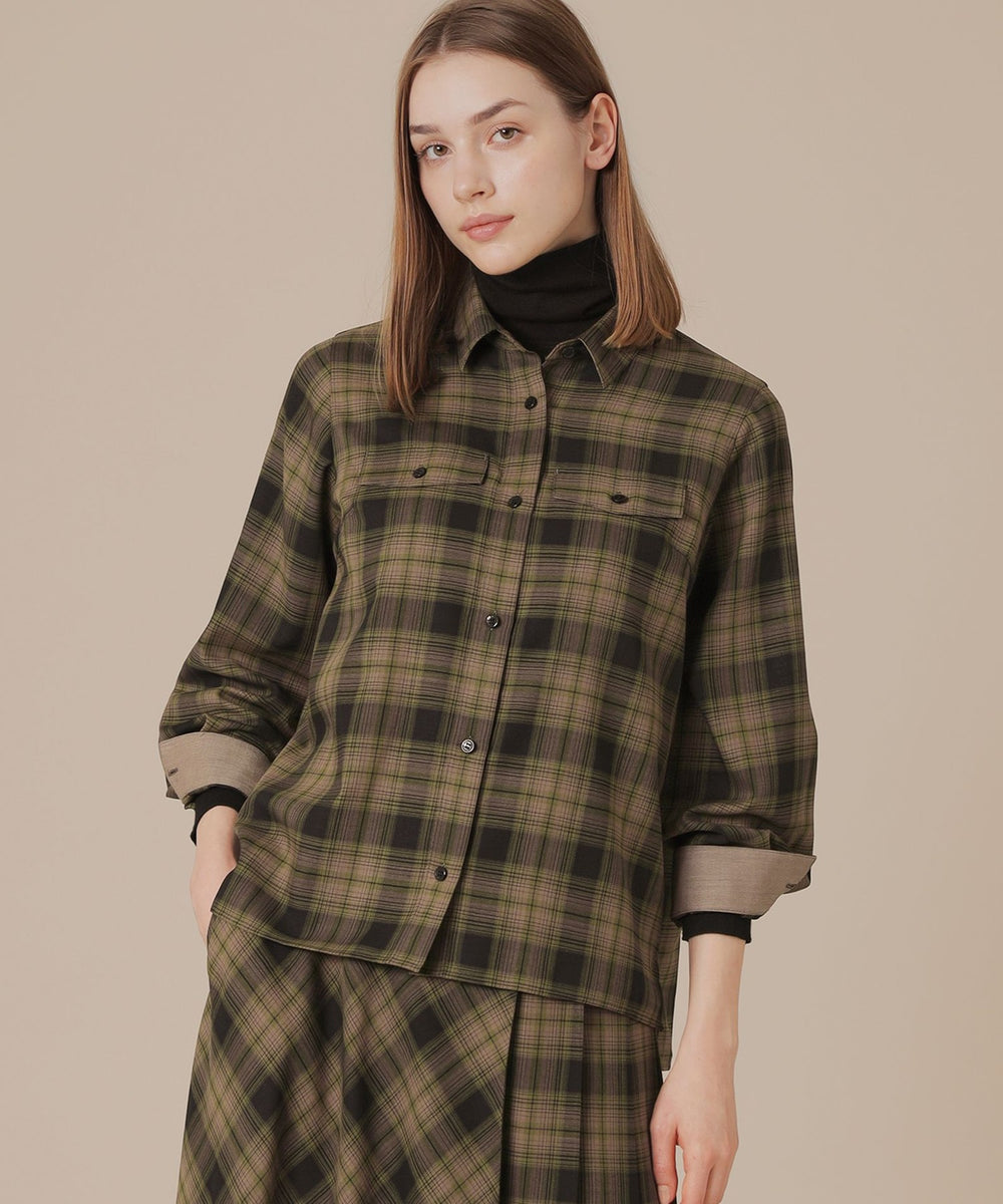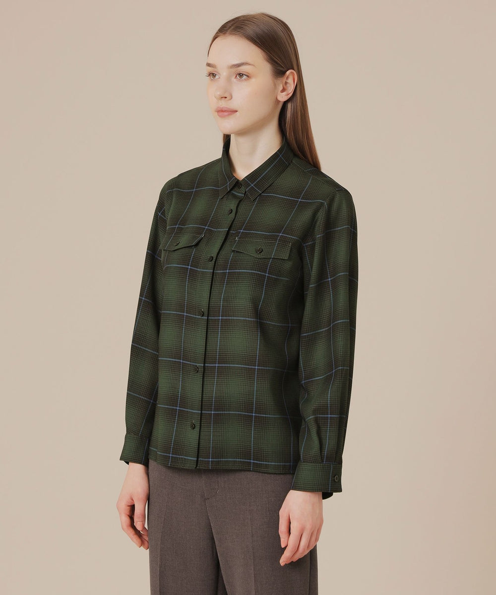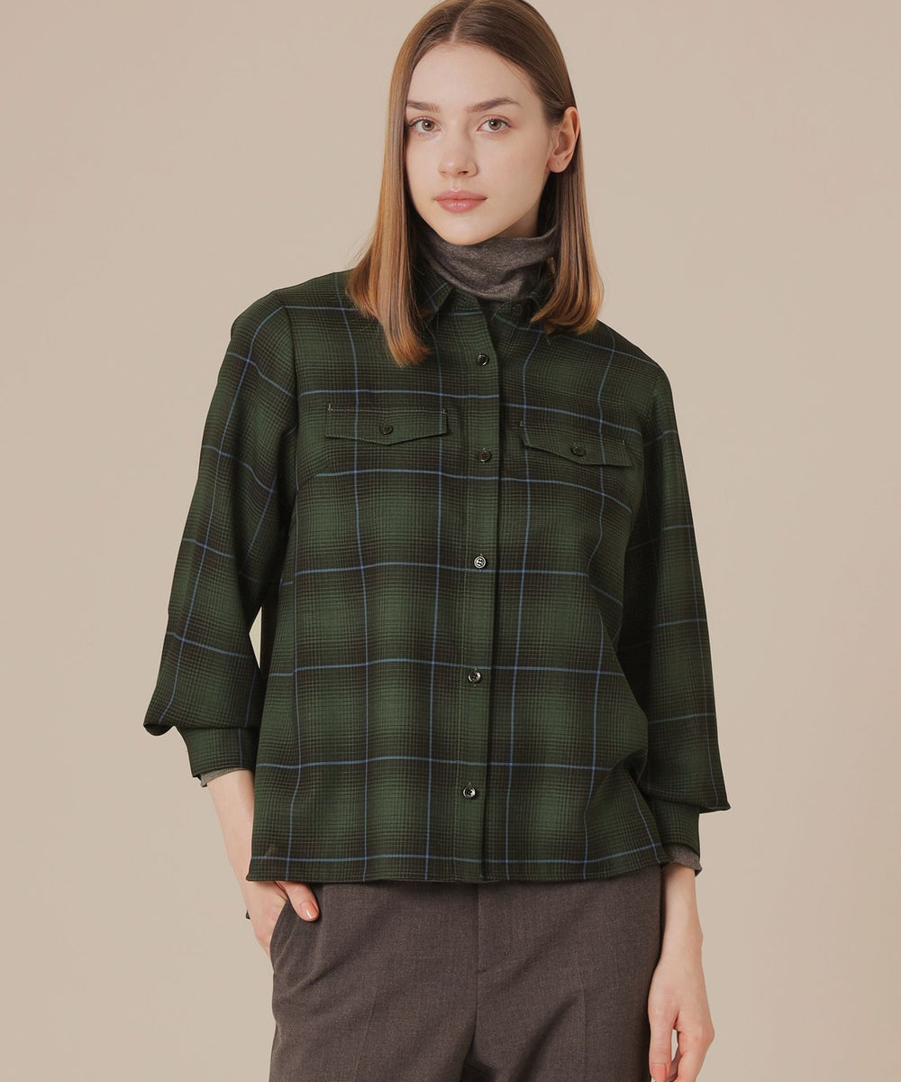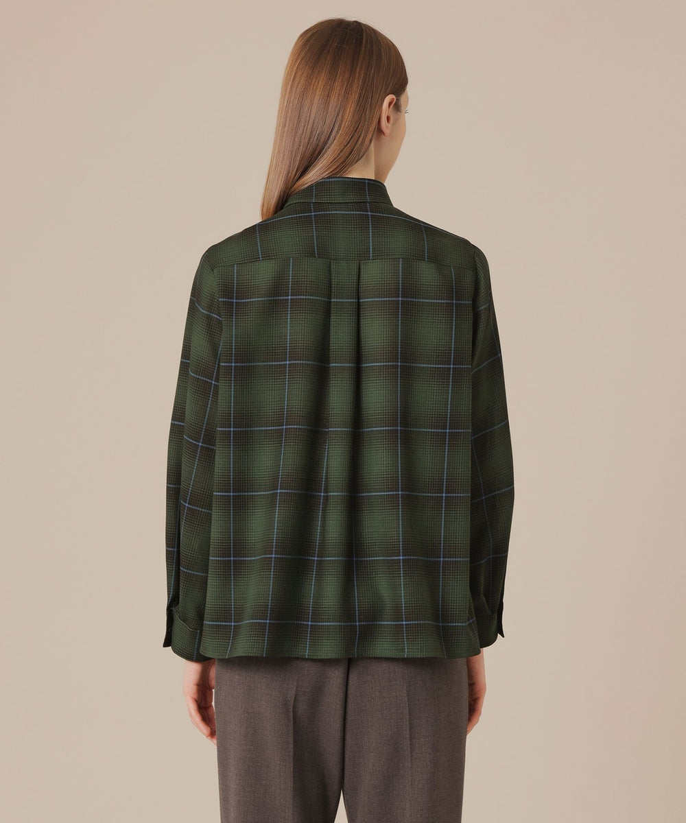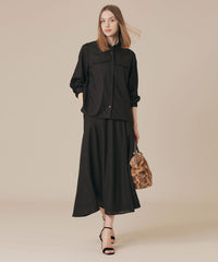 シアーなウォッシャブルウールのブラウスです。季節の変わり目にはフロントを開けて羽織ブラウスとしても活躍します。同素材のスカート(品番:G5S09624)と合わせてワンピースの様にも着用いただけます。