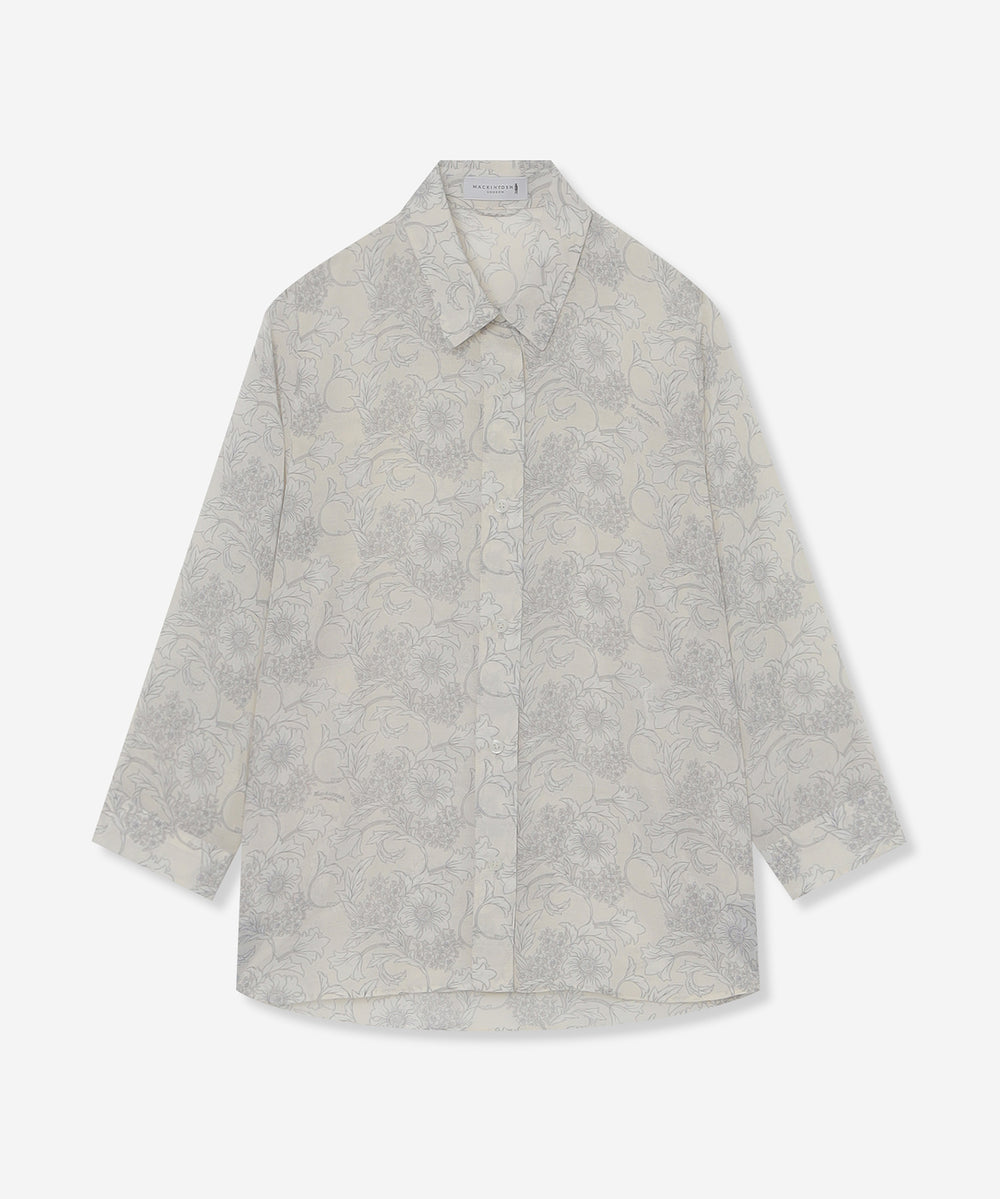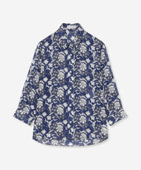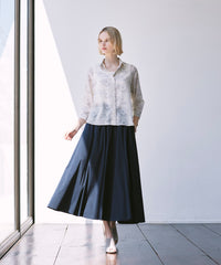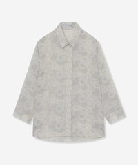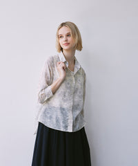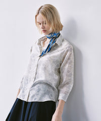 プリントを活かしたベーシックなシャツブラウスです。ゆったりとした身幅と8分袖の涼しげなデザインで暑い時季にも軽快に着用頂けます。裾をタックインしたきれいめスタイリングも、前を開けて羽織りにしたカジュアルスタイリングもどちらもおすすめです。