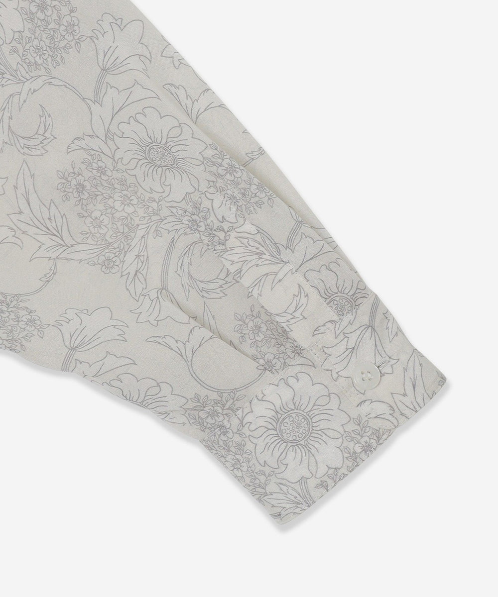イギリス、バイブリー村の花々が咲き誇る美しいイングリッシュガーデンをイメージし、規則性のあるシンメトリックで大胆な柄を緻密に描写したブランドオリジナルのフラワープリントです。MACKINTOSH LONDONでは上品で大人の女性らしいモチーフを「BIBURY FLOWER/バイブリーフラワー」と称しシーズンに合わせたモダンなアレンジで大切に使用しています。