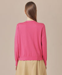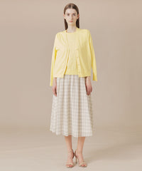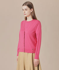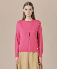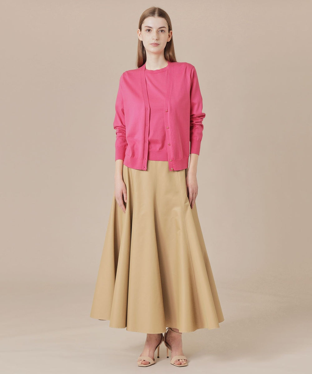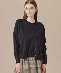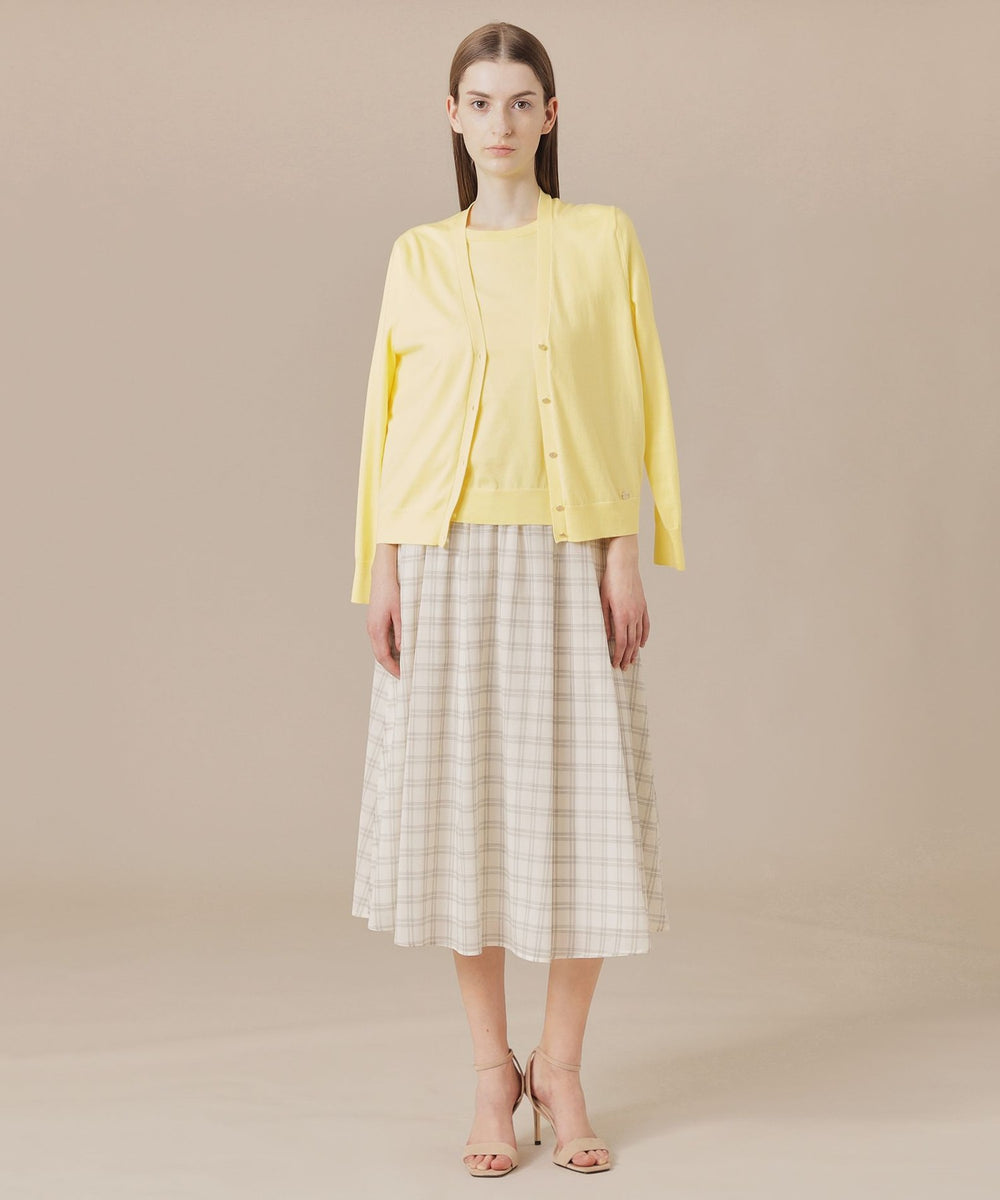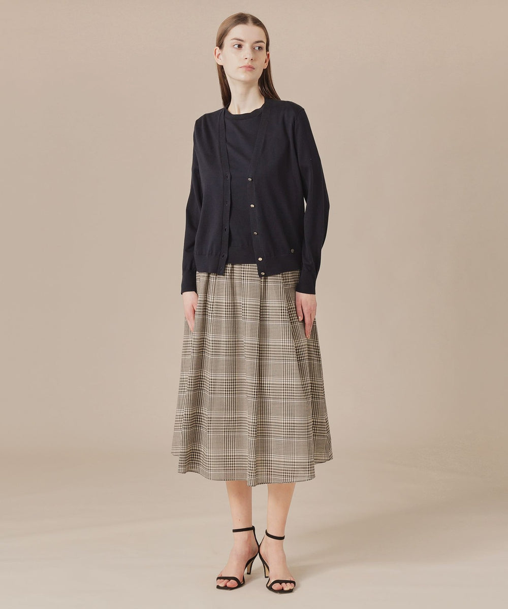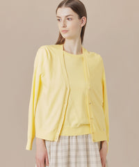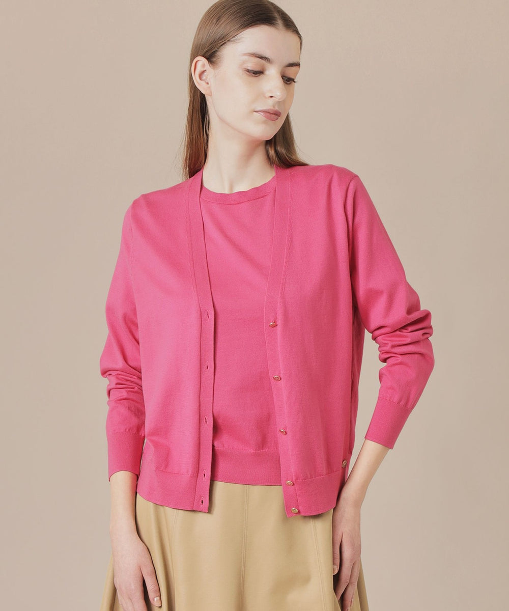 成型編みでバストダーツを入れ、着用時きれいに体にフィットするよう立体的に仕上げたカーディガンです。ミニマルなデザインに金属ボタンがポイントです。同素材のプルオーバー(品番:G5N02500)とアンサンブルで着用いただけます。