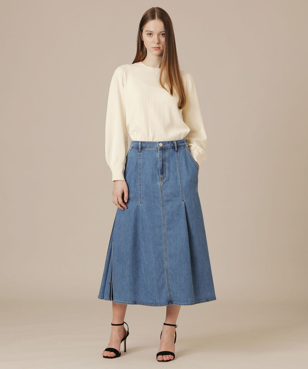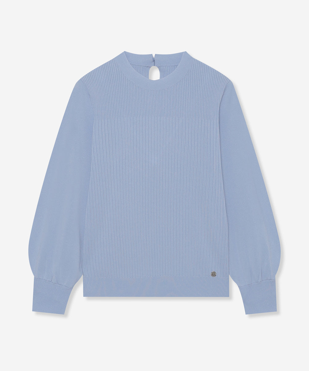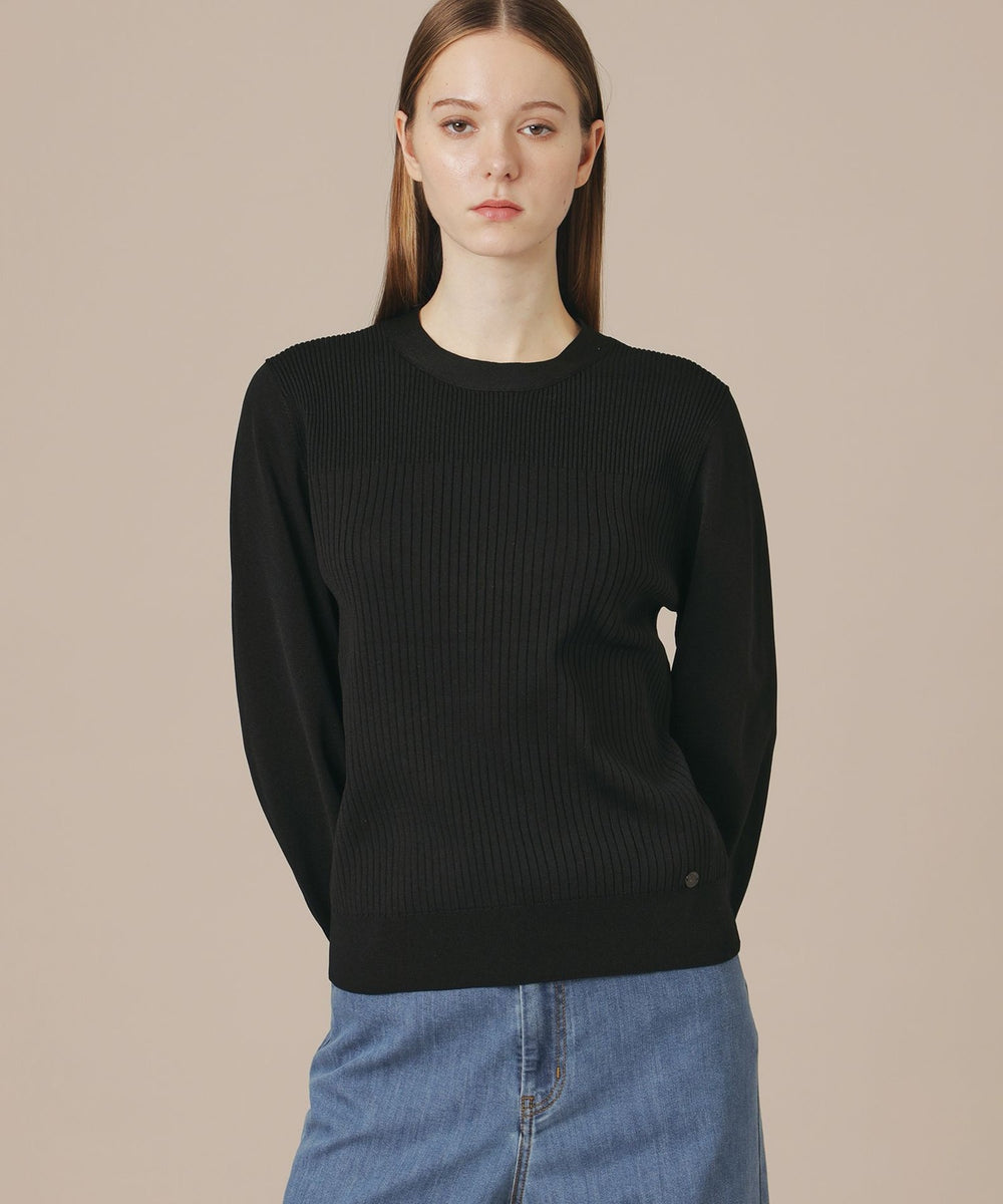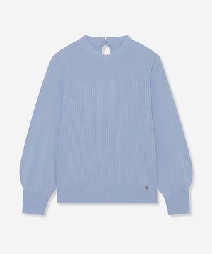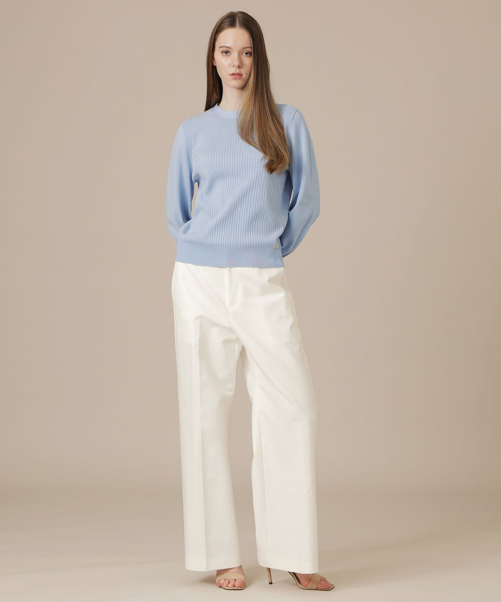 袖のギャザーと衿続きで後へ垂れるボウタイが、上品で華やかな印象のニットプルオーバーです。一枚でも、ジャケットとのレイヤードスタイルにも着映えするデザインニットです。