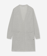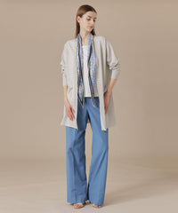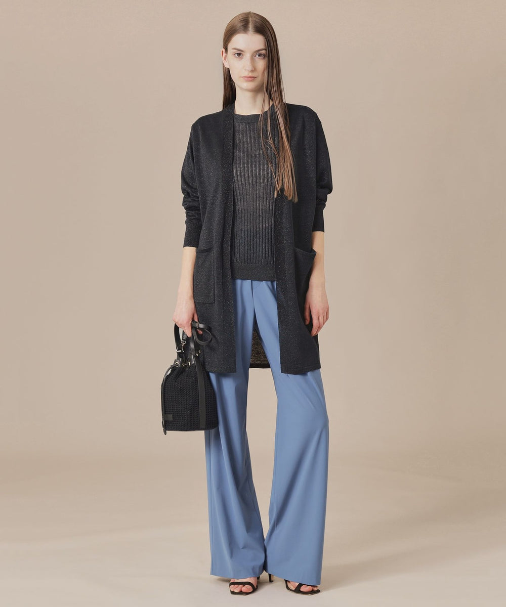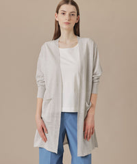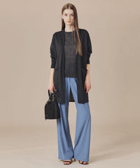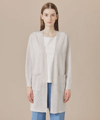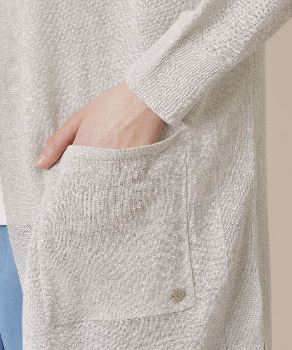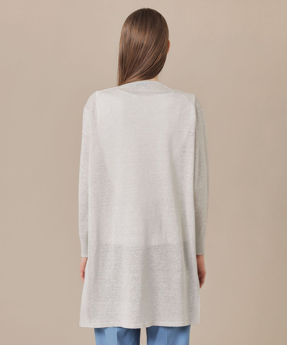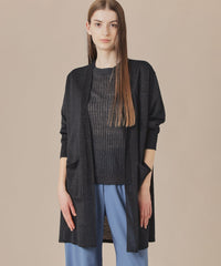 ほんのり肌が透ける涼しげなロングカーディガンです。脇の編地を切り替えて縦のラインを協調し着用した時にスッキリとした印象です。また、脇スリットで動きのある軽快感をプラスしています。
