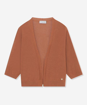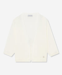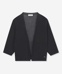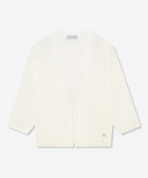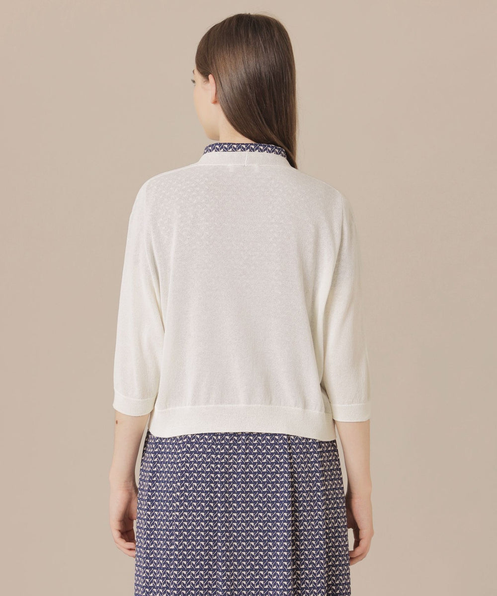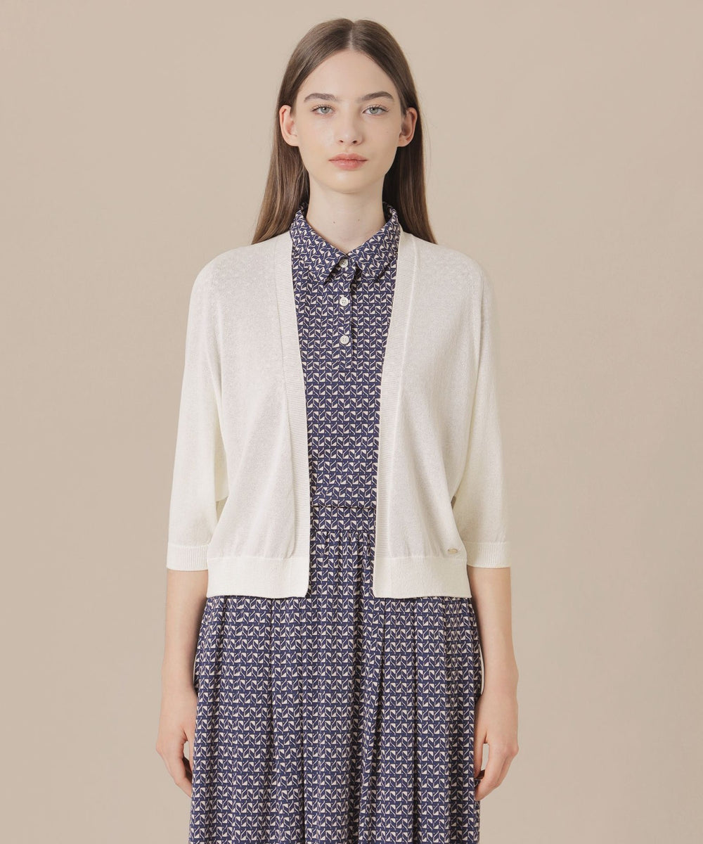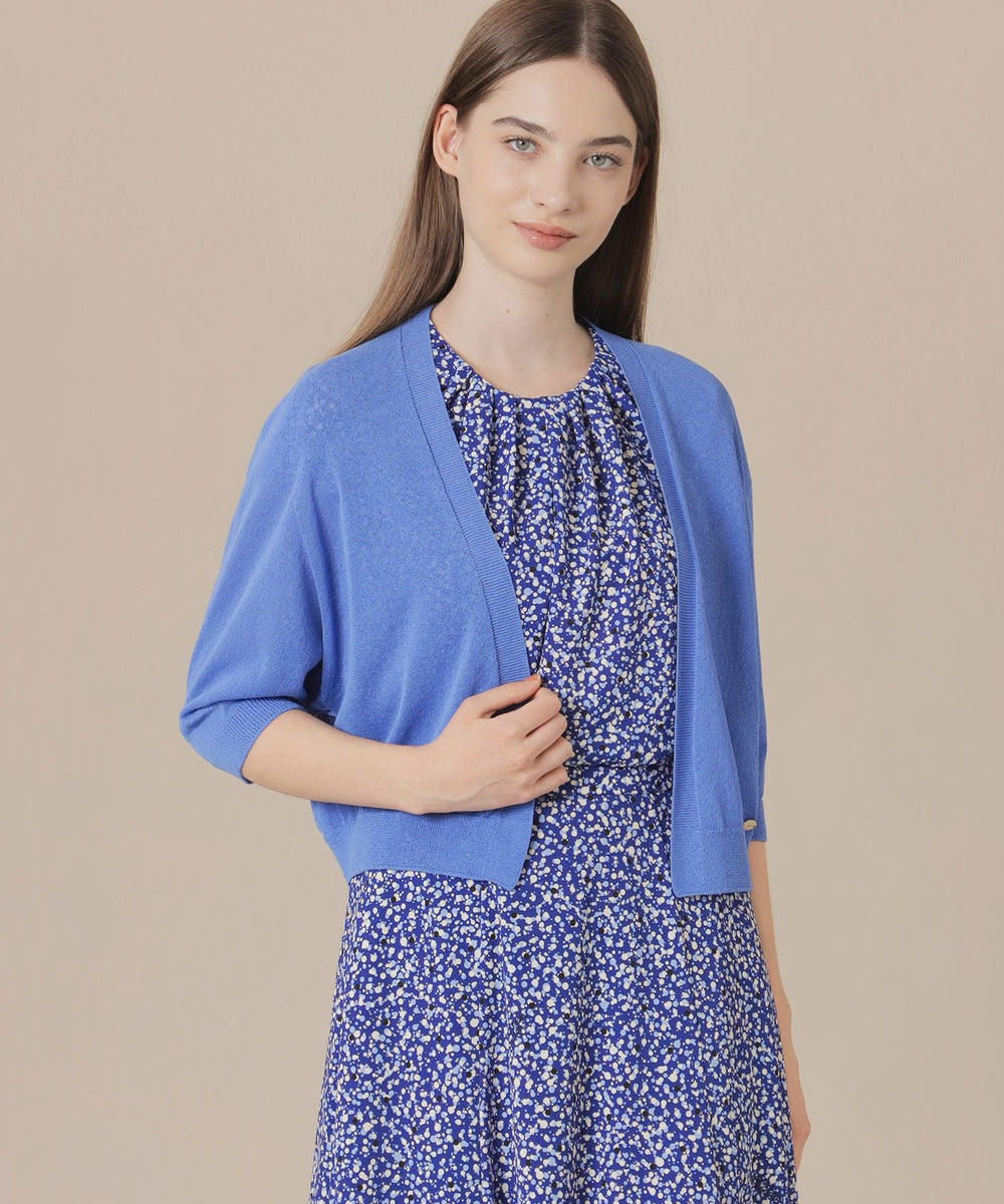 ホールガーメントのボレロです。ドルマン風のゆったりしたアームホールに肘が隠れる上品な袖のバランスがポイントで、ワンピースの上にさらっと羽織れる便利なアイテムです。シームレスの快適な着心地を実感していただけます。
