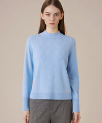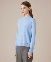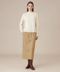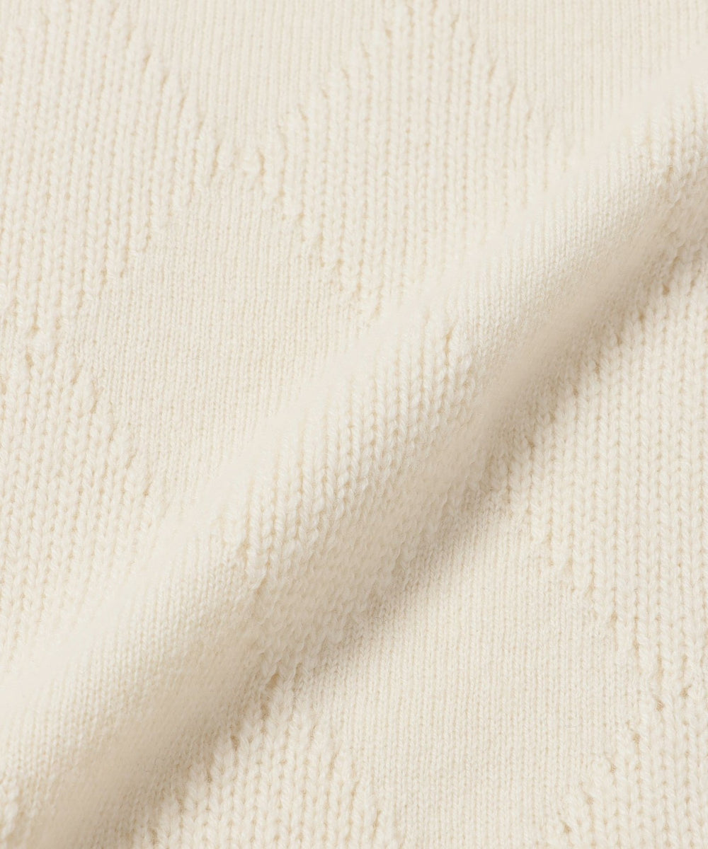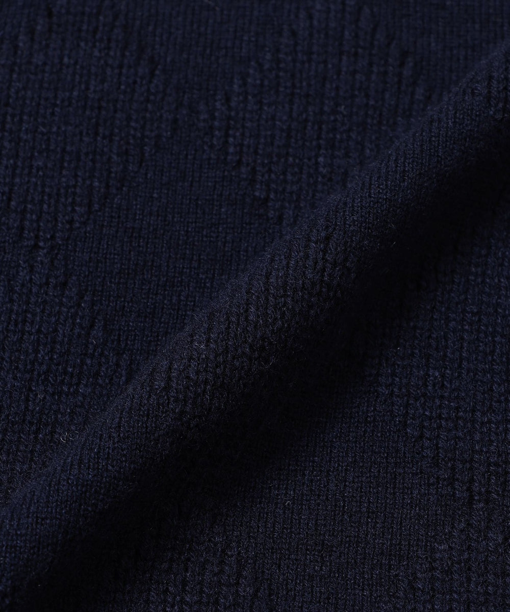 細番手のウールとカシミヤをブレンドした糸を使用し、肌触り良くシルエットがきれいに仕上がる素材です。優しい色合いと上質な風合いも特徴です。