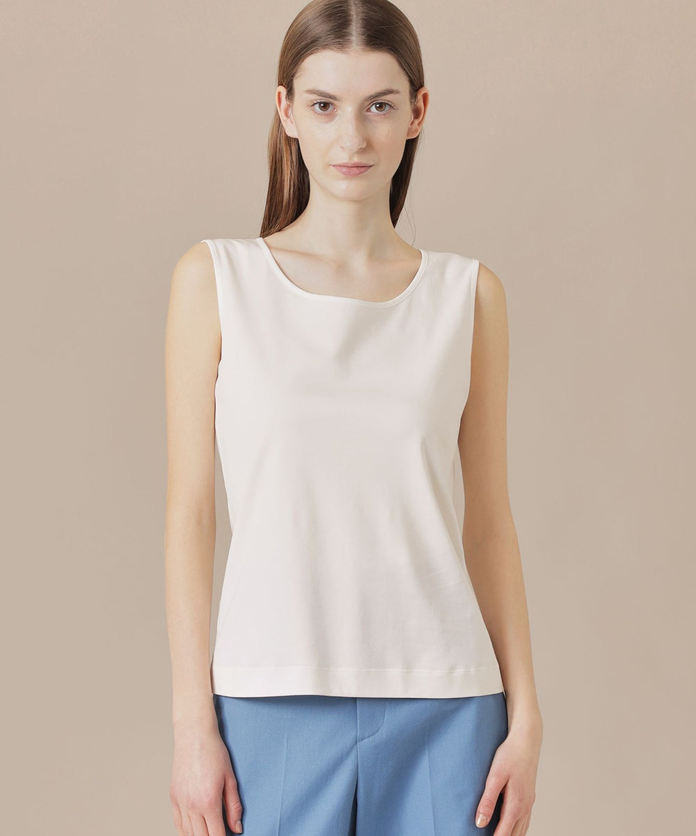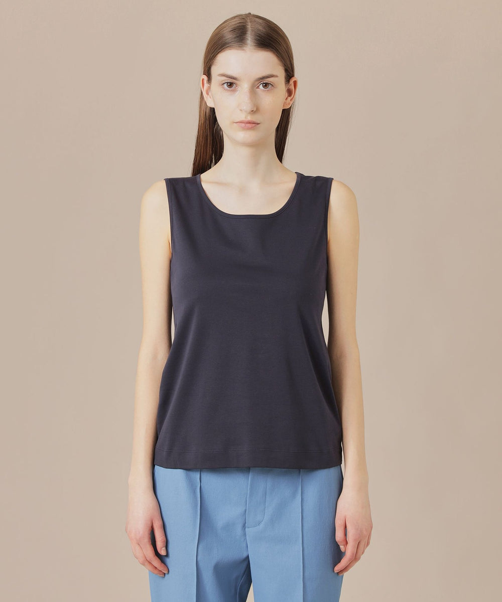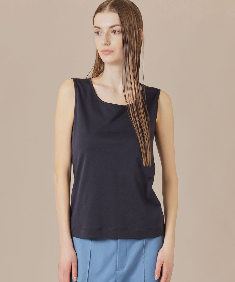 滑らかな肌触りの素材感を十分に感じていただけるタンクトップです。シャツなどに合わせやすい様、衿ぐりを少し横に広く開け、第一釦を外した際に胸元が綺麗に収まる様調整し、丁寧に仕立てたアイテムです。