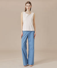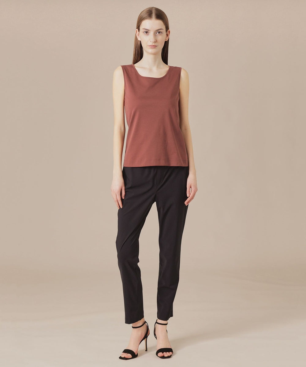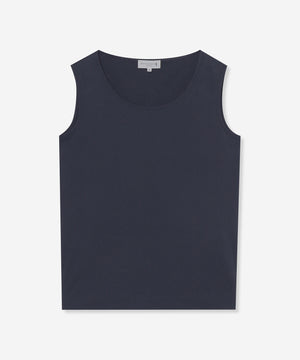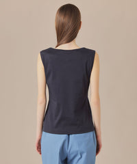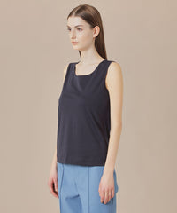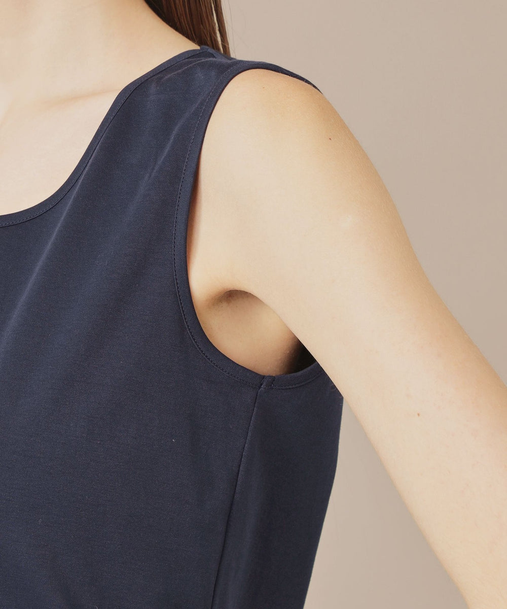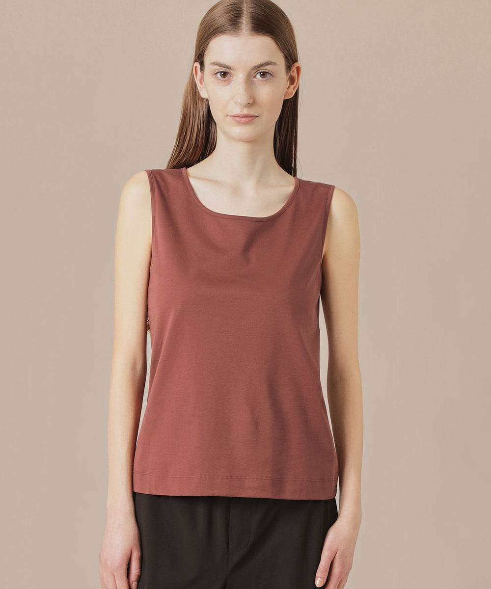 滑らかな肌触りの素材感を十分に感じていただけるタンクトップです。シャツなどに合わせやすい様、衿ぐりを少し横に広く開け、第一釦を外した際に胸元が綺麗に収まる様調整し、丁寧に仕立てたアイテムです。