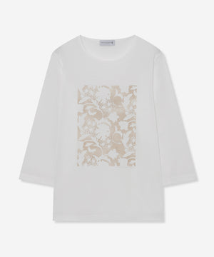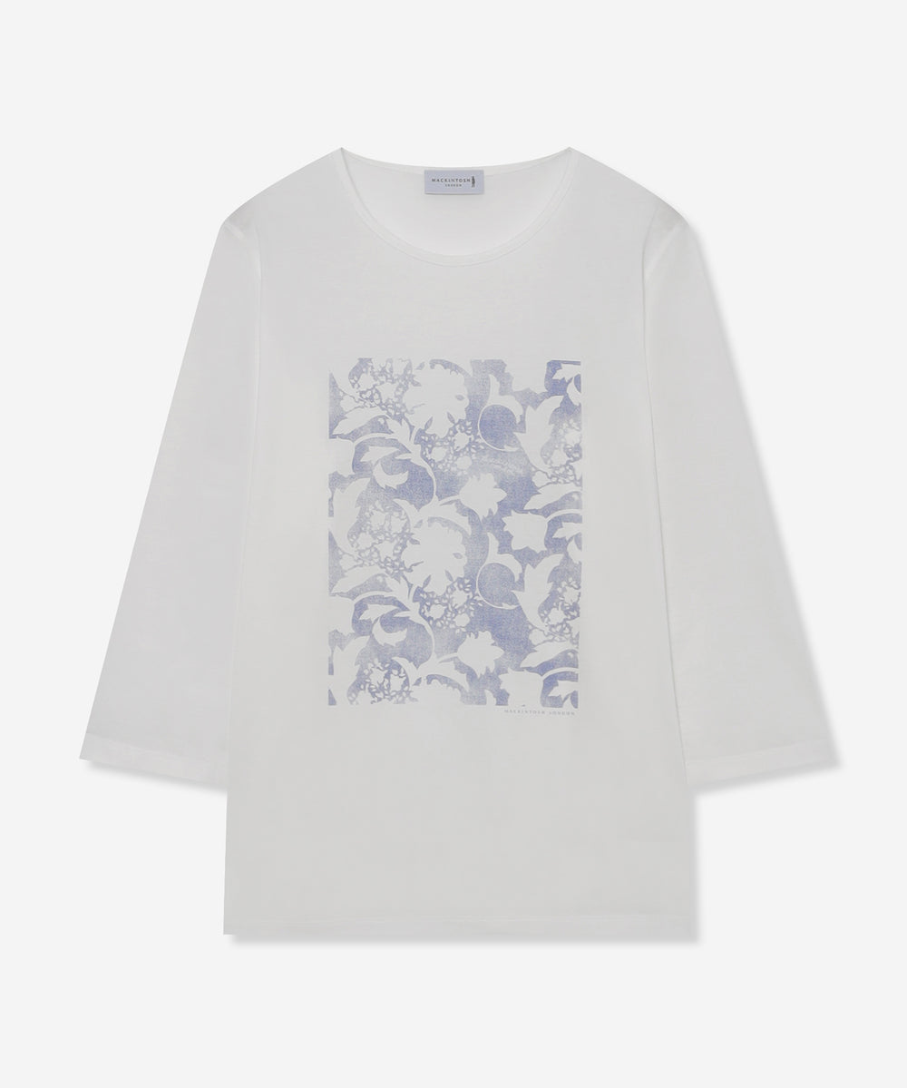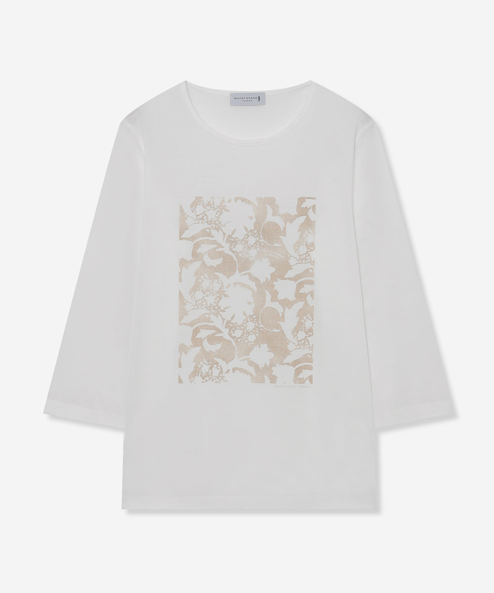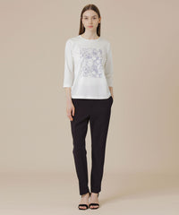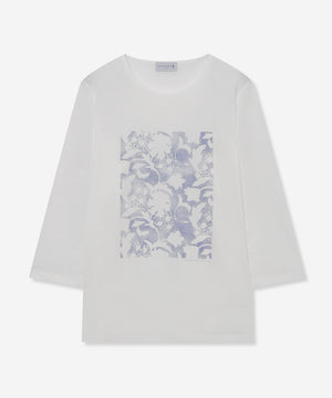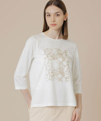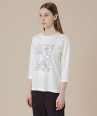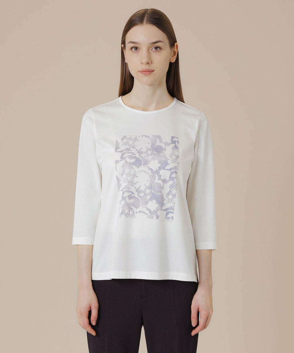 ブランドオリジナルのBIBURY FLOWER柄プリントを優しい色味を活かしながら繊細に仕上げた七分袖Tシャツです。シルエットはエレガントな印象で、コーディネートの汎用性が広く、長く着用いただけるアイテムです。