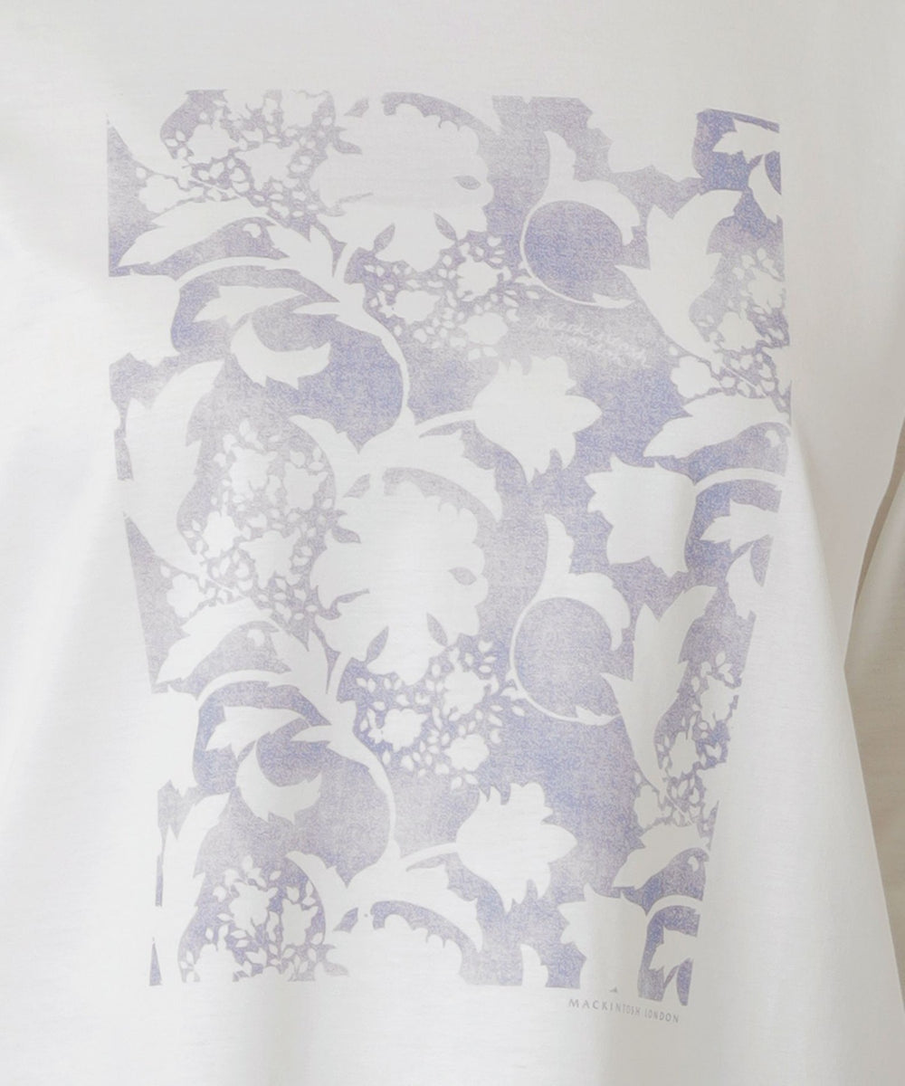 イギリス、バイブリー村の花々が咲き誇る美しいイングリッシュガーデンをイメージし、規則性のあるシンメトリックで大胆な柄を緻密に描写したブランドオリジナルのフラワープリントです。MACKINTOSH LONDONでは「BIBURY FLOWER/バイブリーフラワー」と称しシーズンに合わせたモダンなアレンジで大切に使用しています。