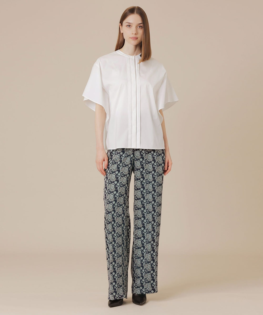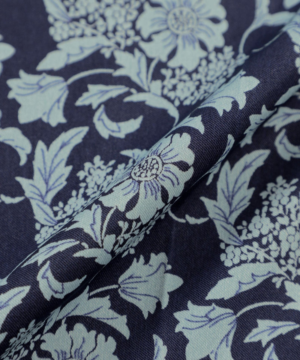 イギリス、バイブリー村の花々が咲き誇る美しいイングリッシュガーデンをイメージし、規則性のあるシンメトリックで大胆な柄を緻密に描写したブランドオリジナルのフラワープリントです。MACKINTOSH LONDONでは上品で大人のやさしいモチーフを「BIBURY FLOWER/バイブリーフラワー」と称しシーズンに合わせたモダンなアレンジで大切に使用しています。