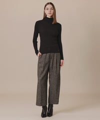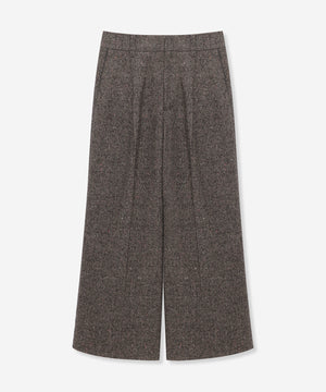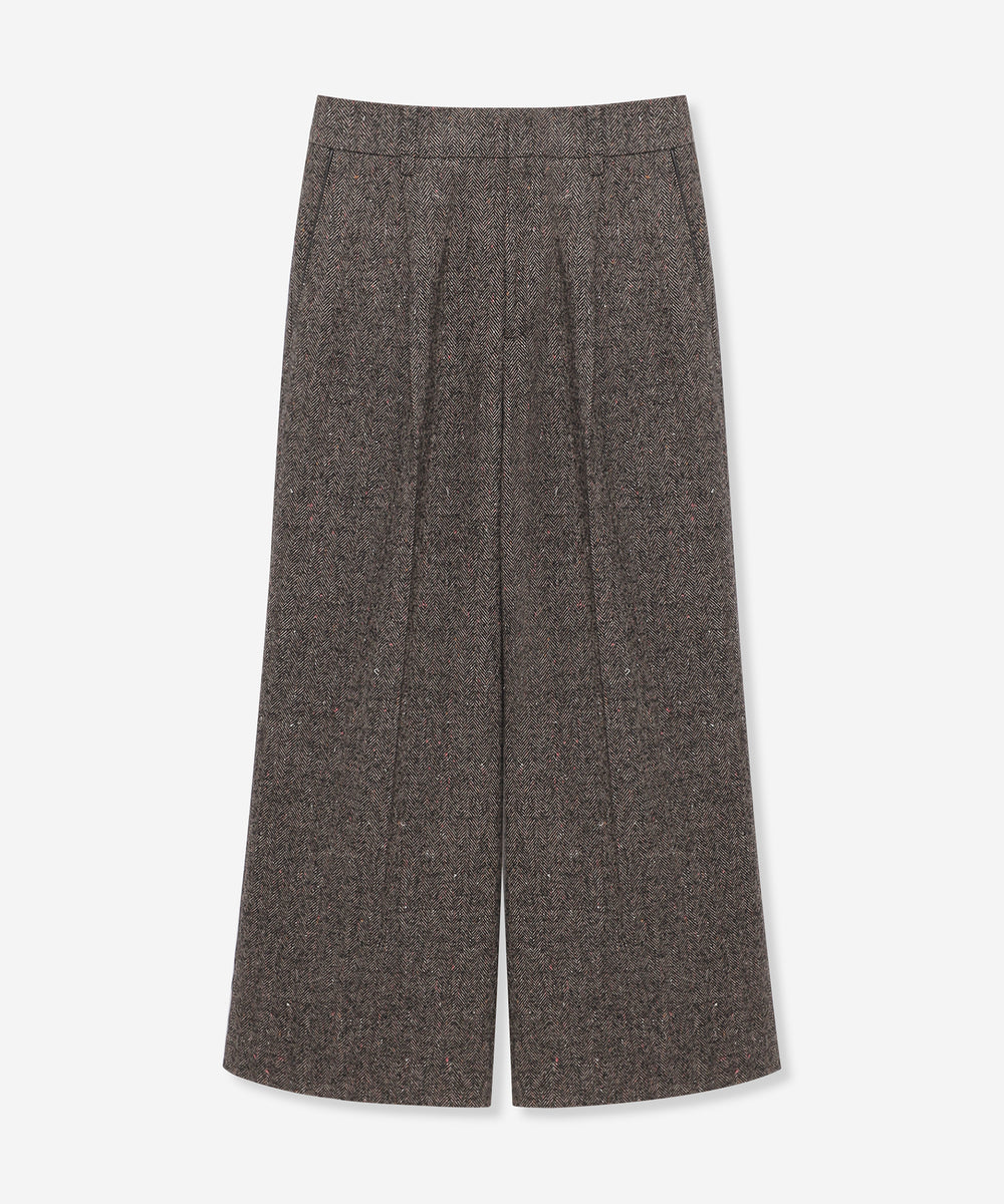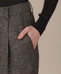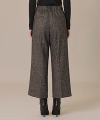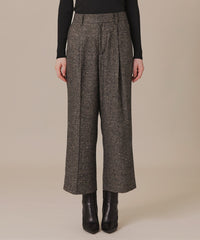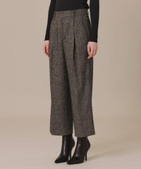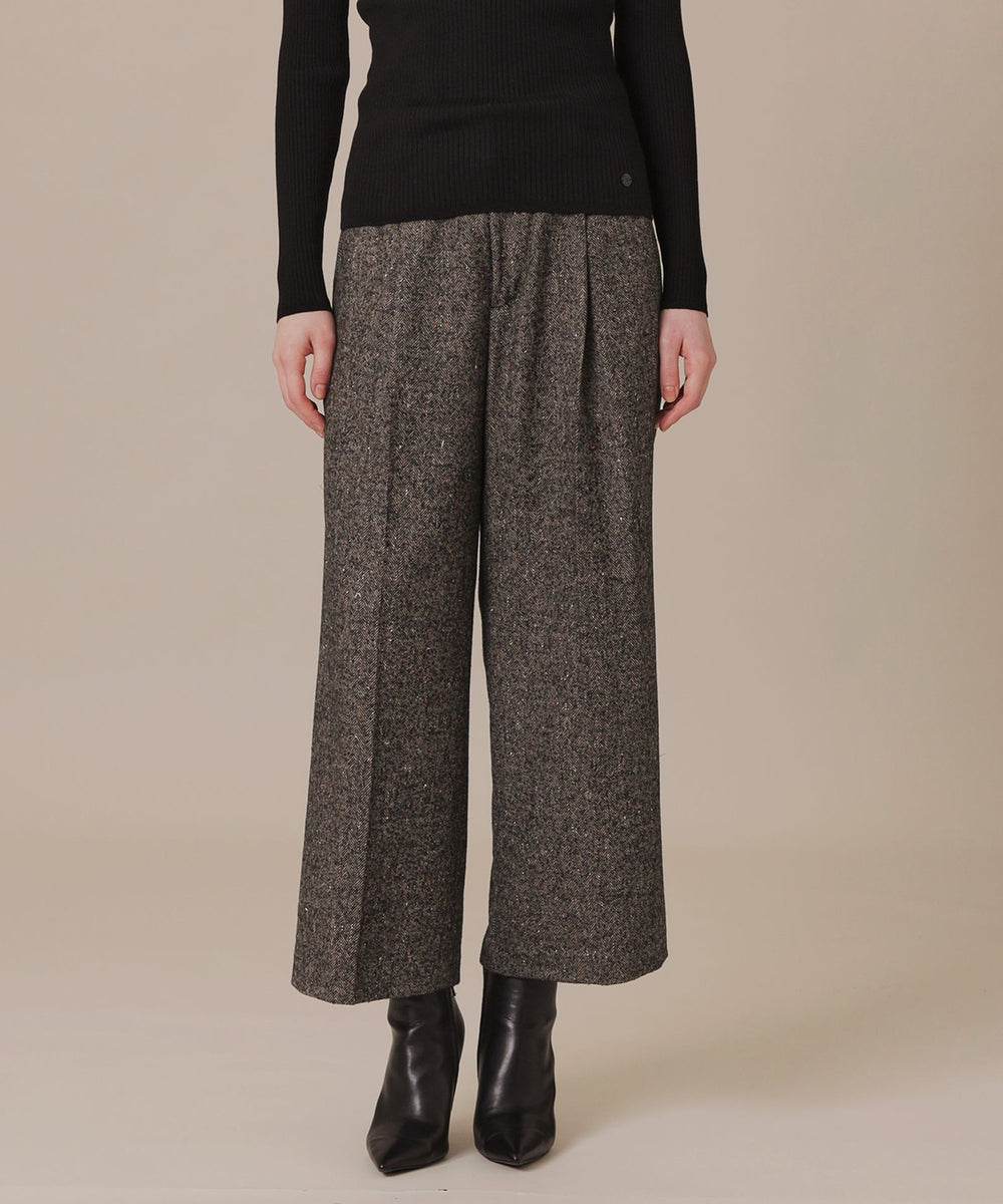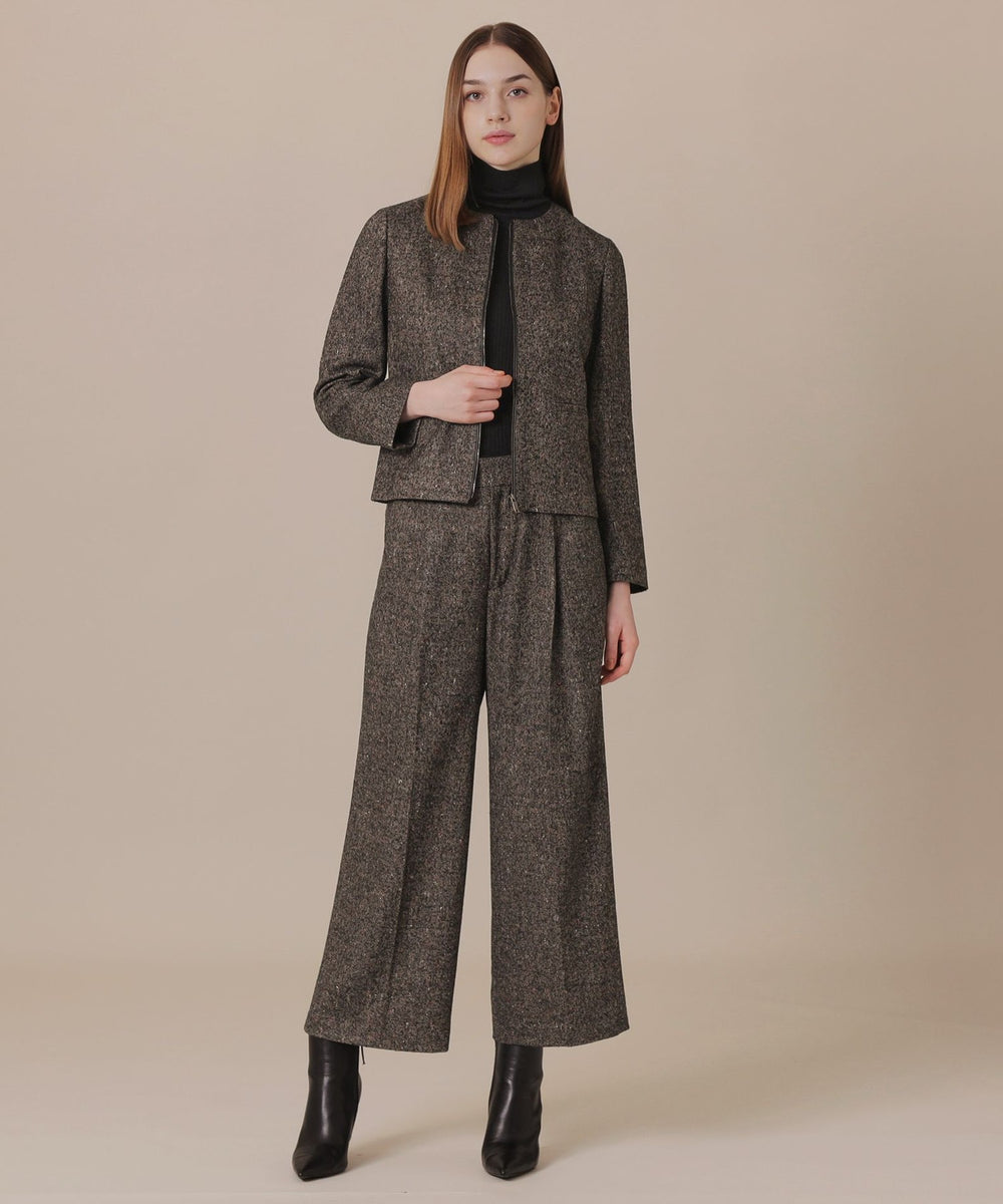 ボリュームのある2タックとクロップド丈でバランスよく仕上げたワイドパンツです。ブーツと合わせてクラシカルにもスタイリングでき、秋冬のコーディネートにおすすめのアイテムです。裏地なしです。同素材のジャケット(品番:G5E03672)もご用意していおります。