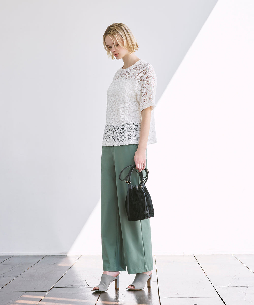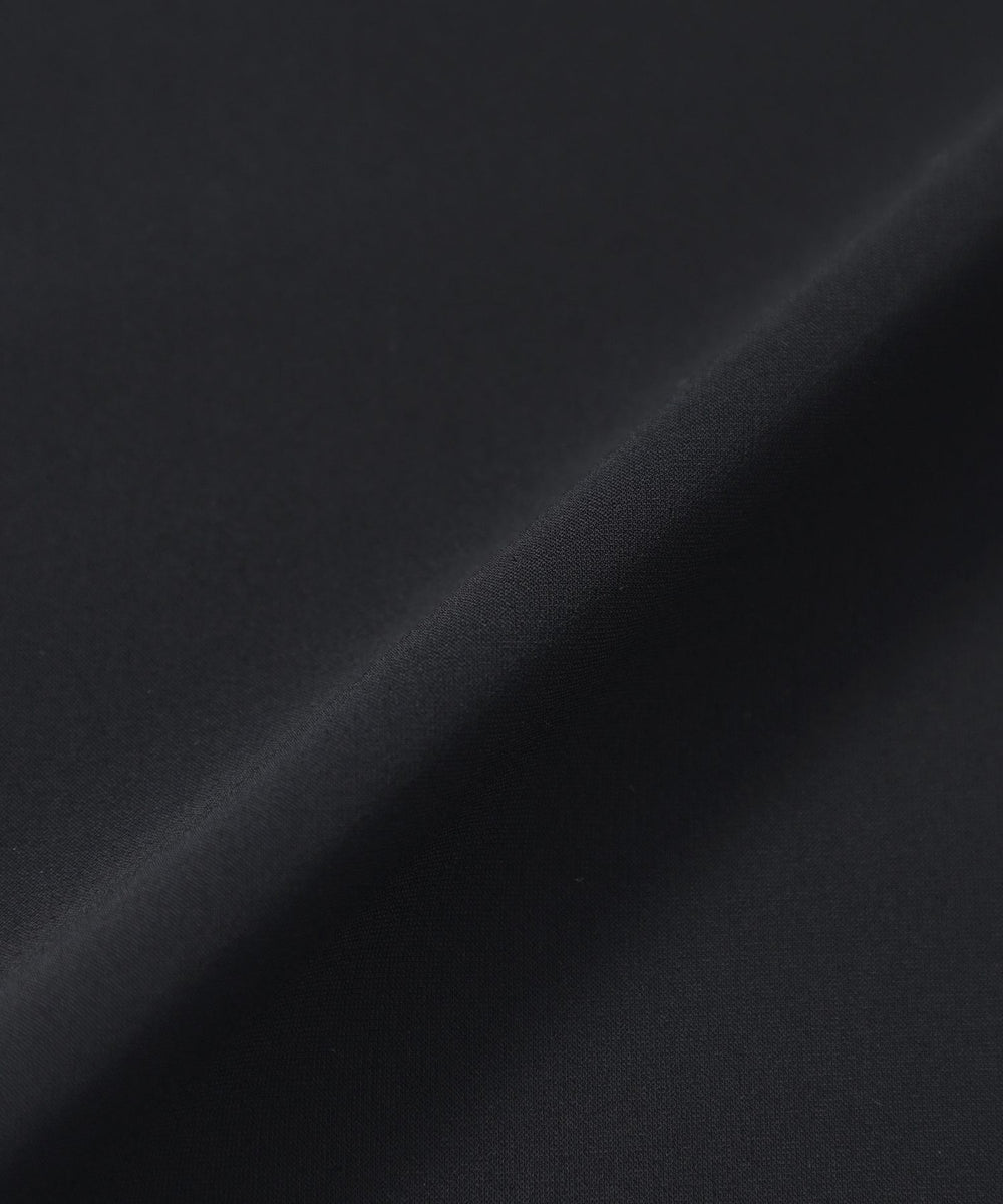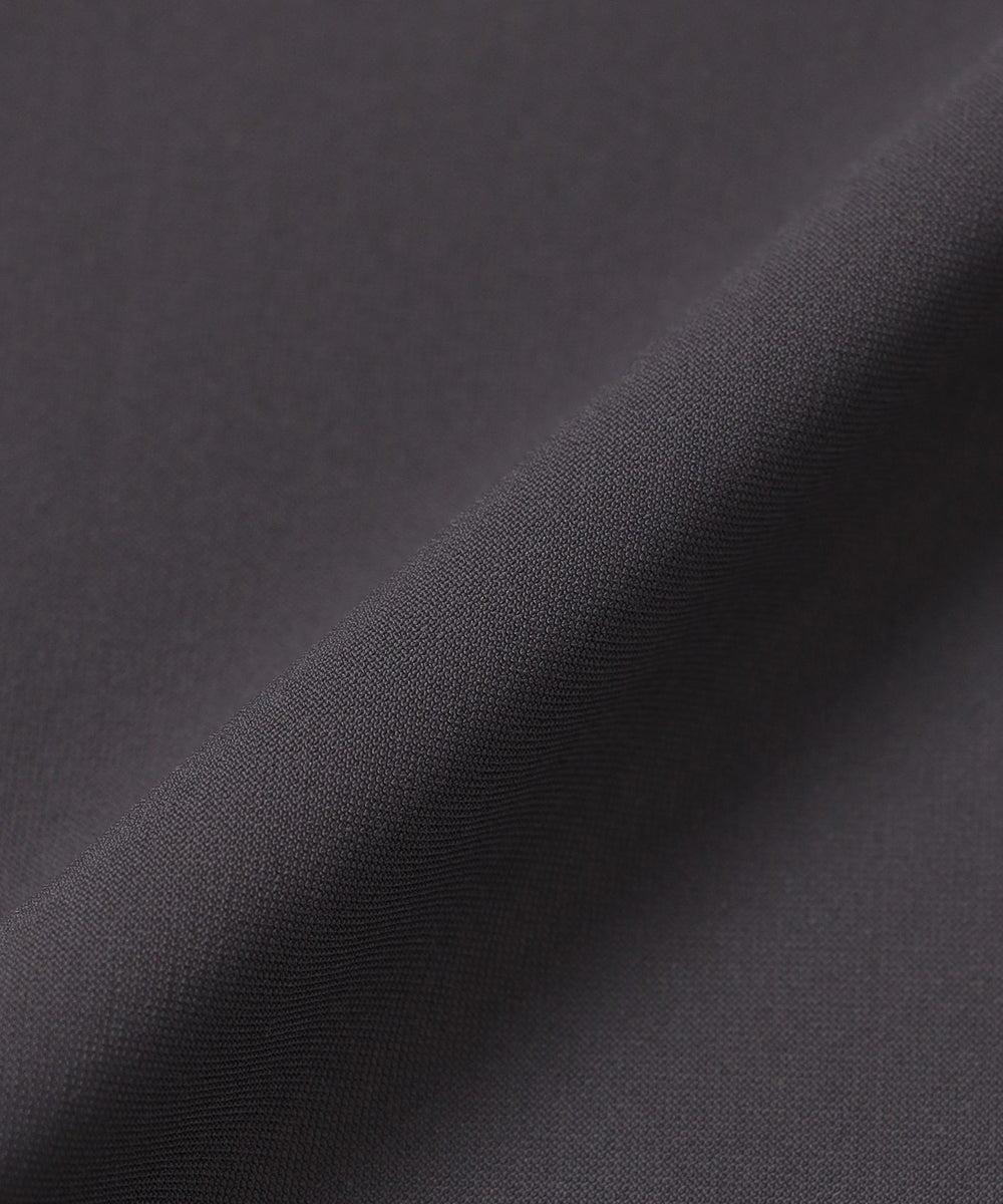 軽量で適度なハリがありさらっとした風合いのトリコット素材です。自然なストレッチ性で動きやすく快適な着用感も特徴です。また、シワが目立ちにくくリラックス感がありながら、綺麗な見た目でエレガントな表情もあります。