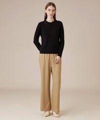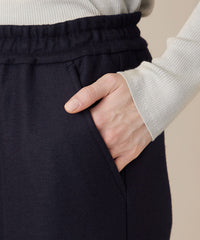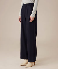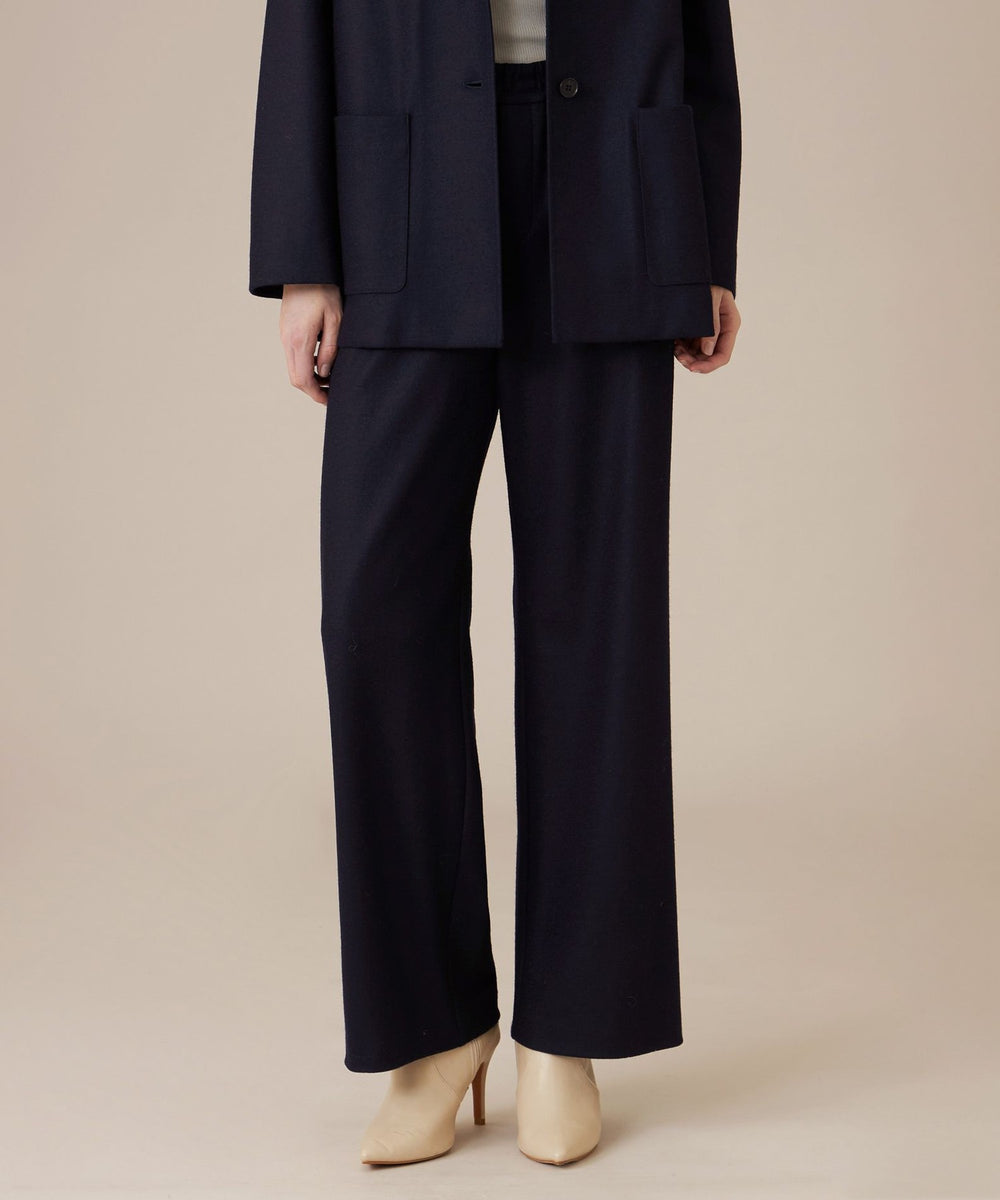 自然に広がるワイドシルエットで分量感がありながら、やさしいメリハリのあるバランスに仕上げたパンツです。ウエストにゴムを使用しはき心地が良く着用いただけるアイテムです。裏地無し、フルレングスです。同素材のジャケット(品番:G5E20682)、スカート(品番:G5S19682)もご用意しております。