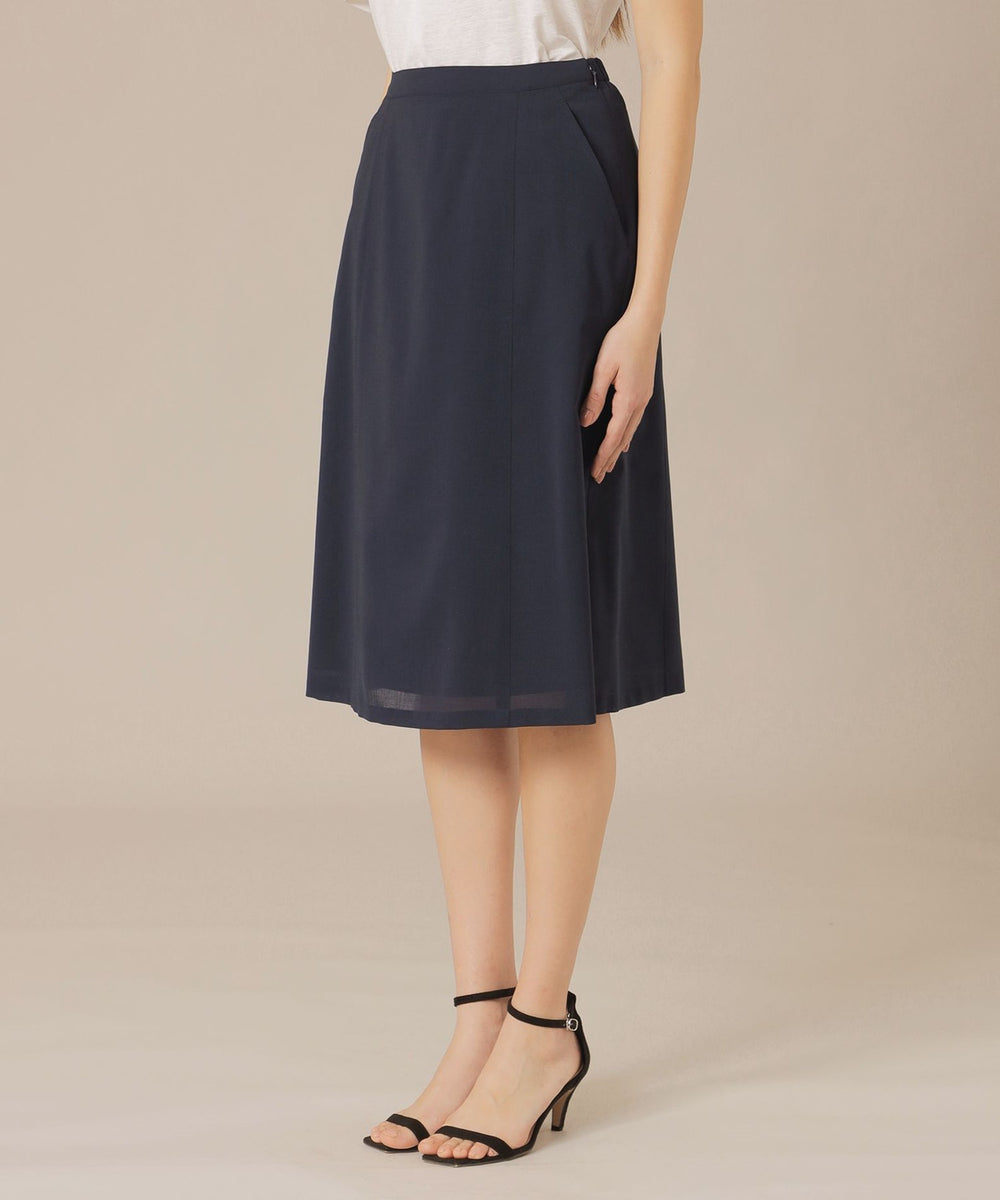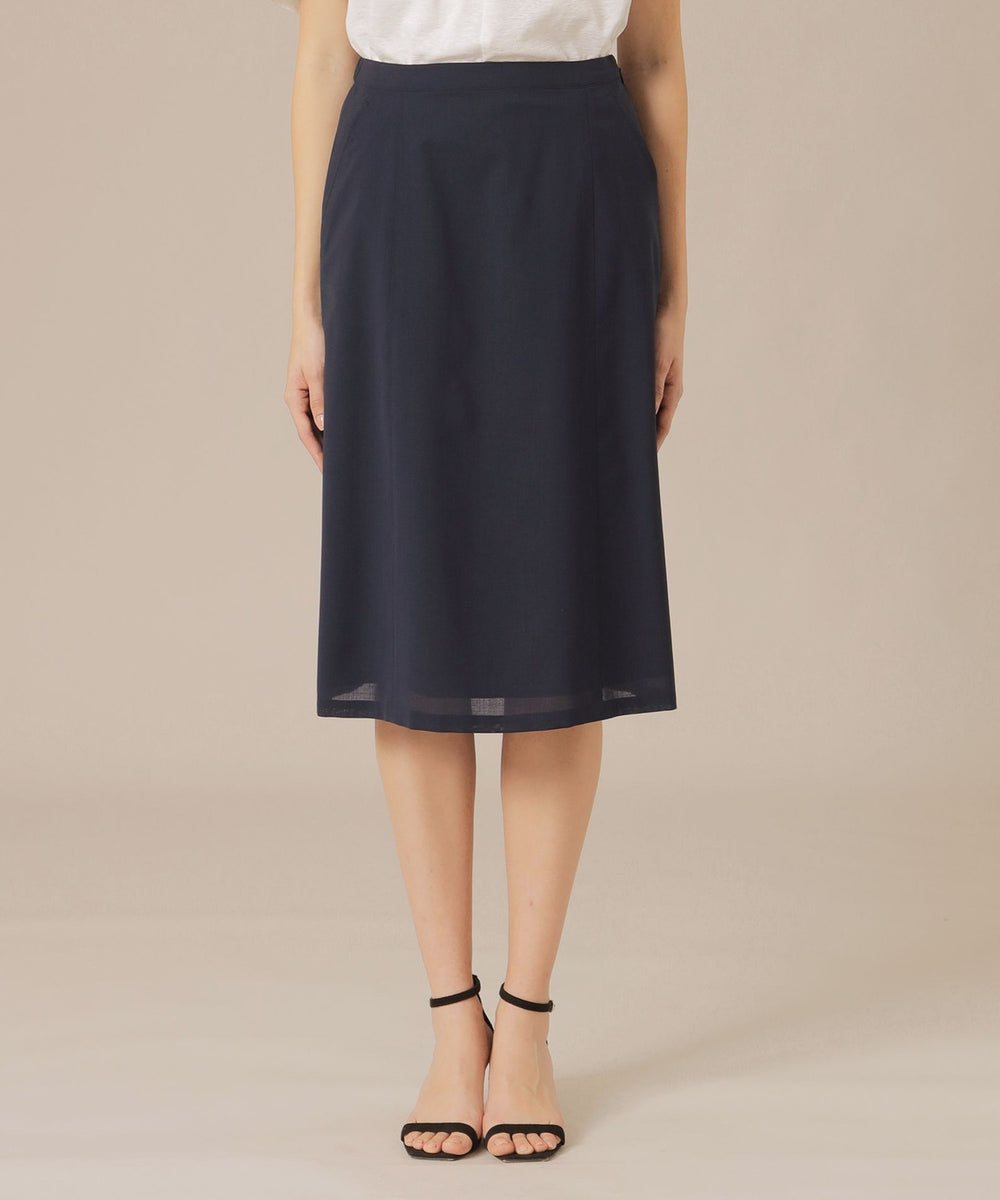 ビジネスシーンにも活躍するストレートシルエットのスカートです。ウエストの後ろはゴム仕様で履き心地が良いアイテムです。裏地付きです。同素材のジャケット(品番:G5E13549)もご用意しております。