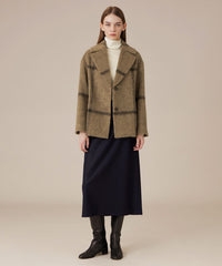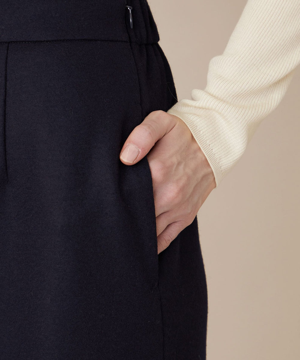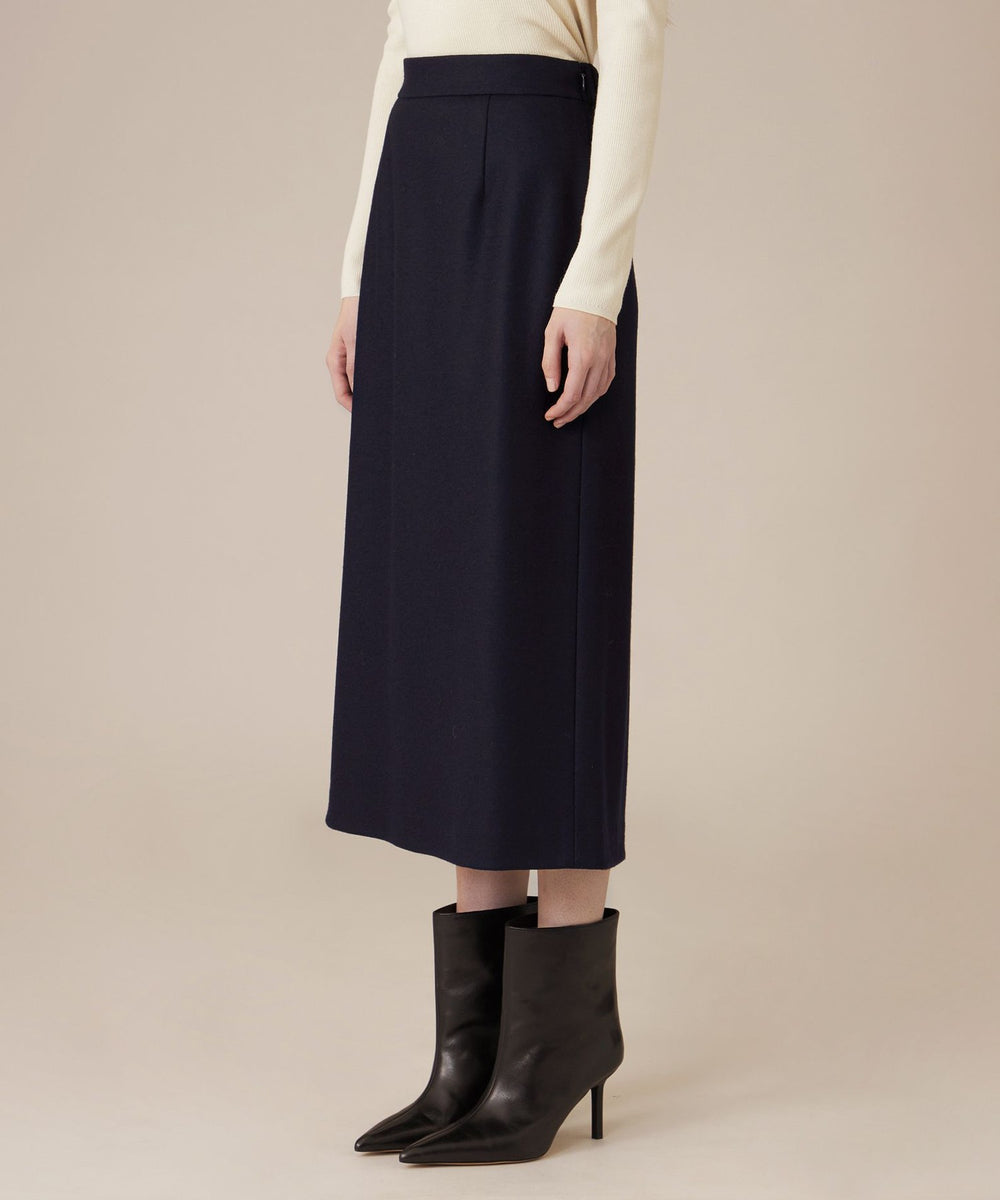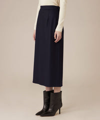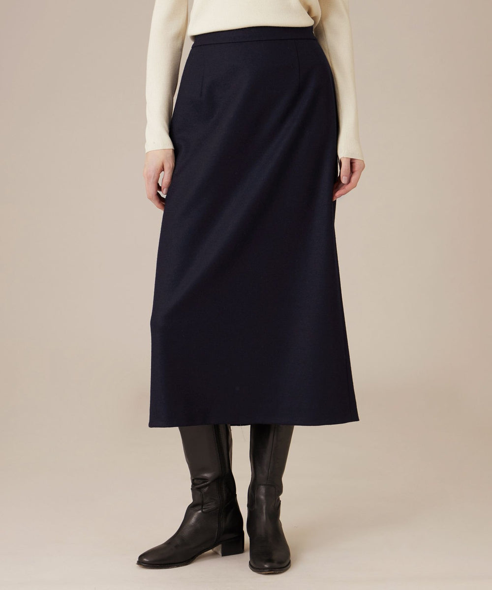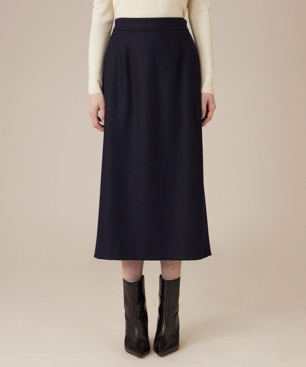長めの丈感と、裾に向かってほのかに広がるセミタイトシルエットで、クラシカルなバランスに仕上げたスカートです。きれいめにはもちろん、ニットを合わせてカジュアルダウンした着こなしなど、さまざまなスタイリングをお楽しみいただけるアイテムです。裏地無しです。同素材のジャケット(品番:G5E20682)、パンツ(品番:G5R17682)もご用意しております。