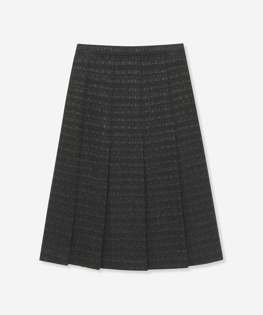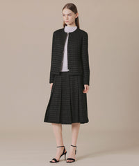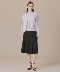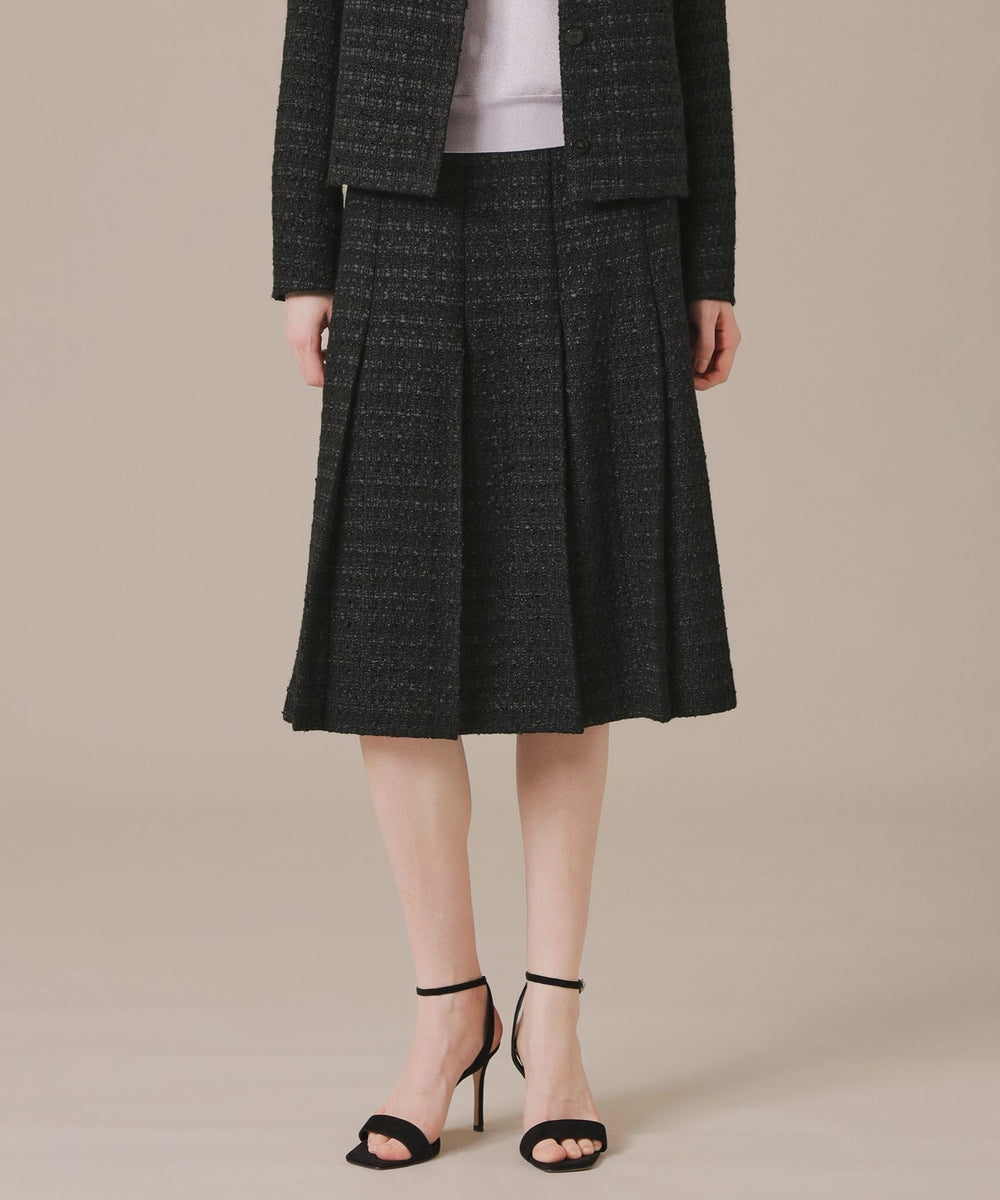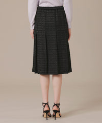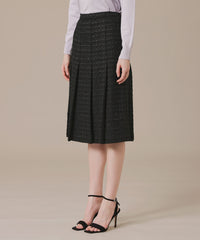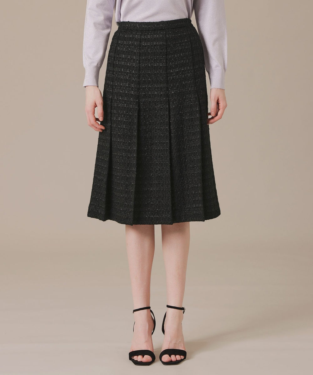腰回りがスッキリとしたAラインのタックスカートで、裾が広がり過ぎないエレガントなシルエットです。裏地付きです。同素材のジャケット(品番:G5E62707)もご用意しております。