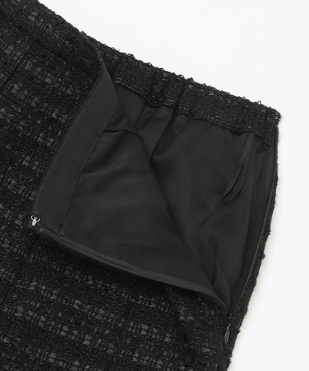 日本産のツイード生地を使用しています。部分的にラメ糸をいれることで華やかさをプラスした素材です。
