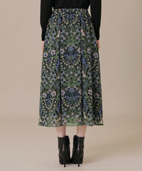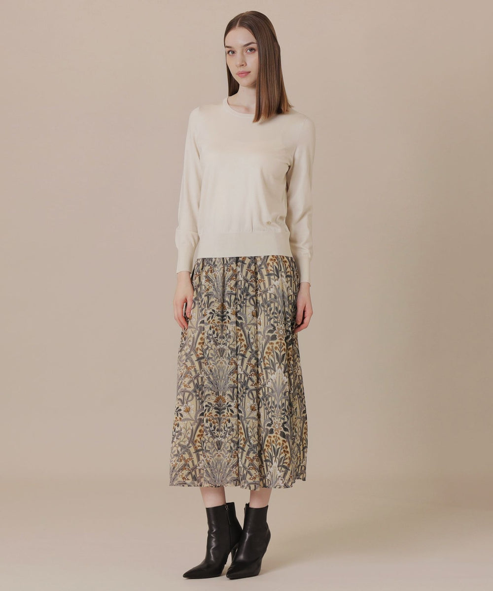 裾に向けて広がるシルエットがエレガントな印象の繊細なギャザースカートです。脇のギャザーは少なくし腰回りはスッキリとしています。同素材のブラウス(品番:G5M88694)やニットとのスタイリングにも活躍します。