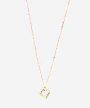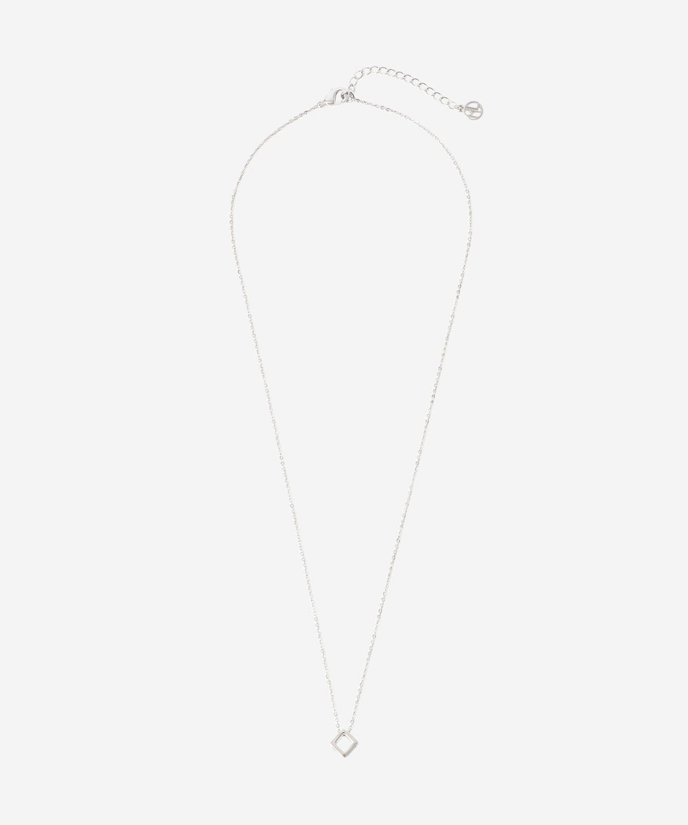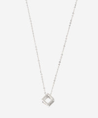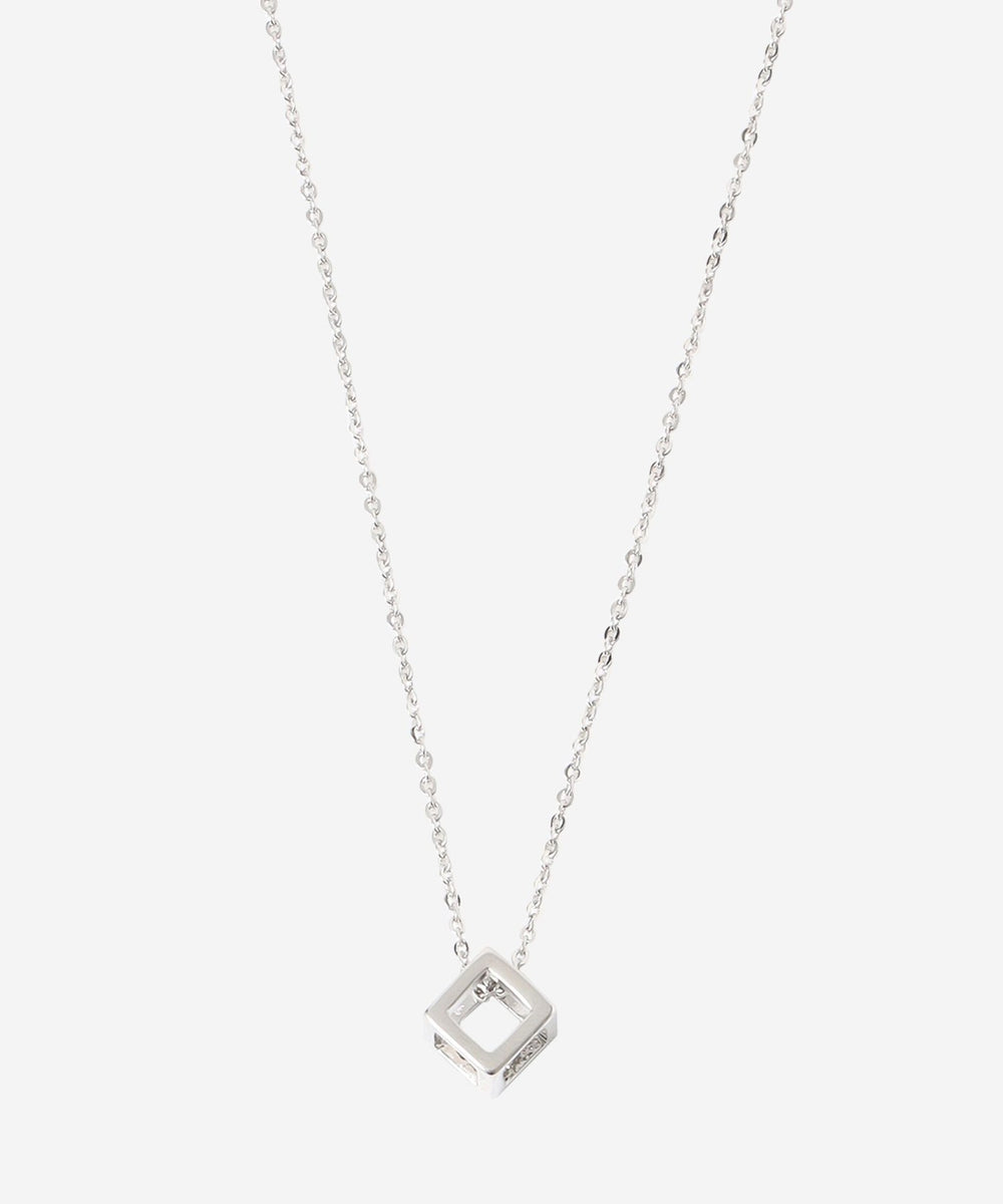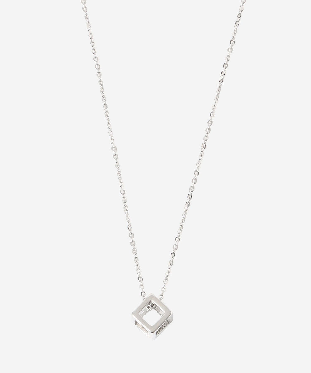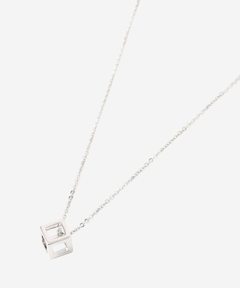 キューブ型のメタルチャームをチェーンに通したネックレスです。シンプルでモダンなデザインで様々な服に合わせやすく、日常的にお使いいただけます。カニカンをアジャスターチェーンのお好きな位置に留めることにより長さを調節できるようになっています。ニッケルフリーのメッキを施しています