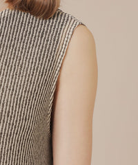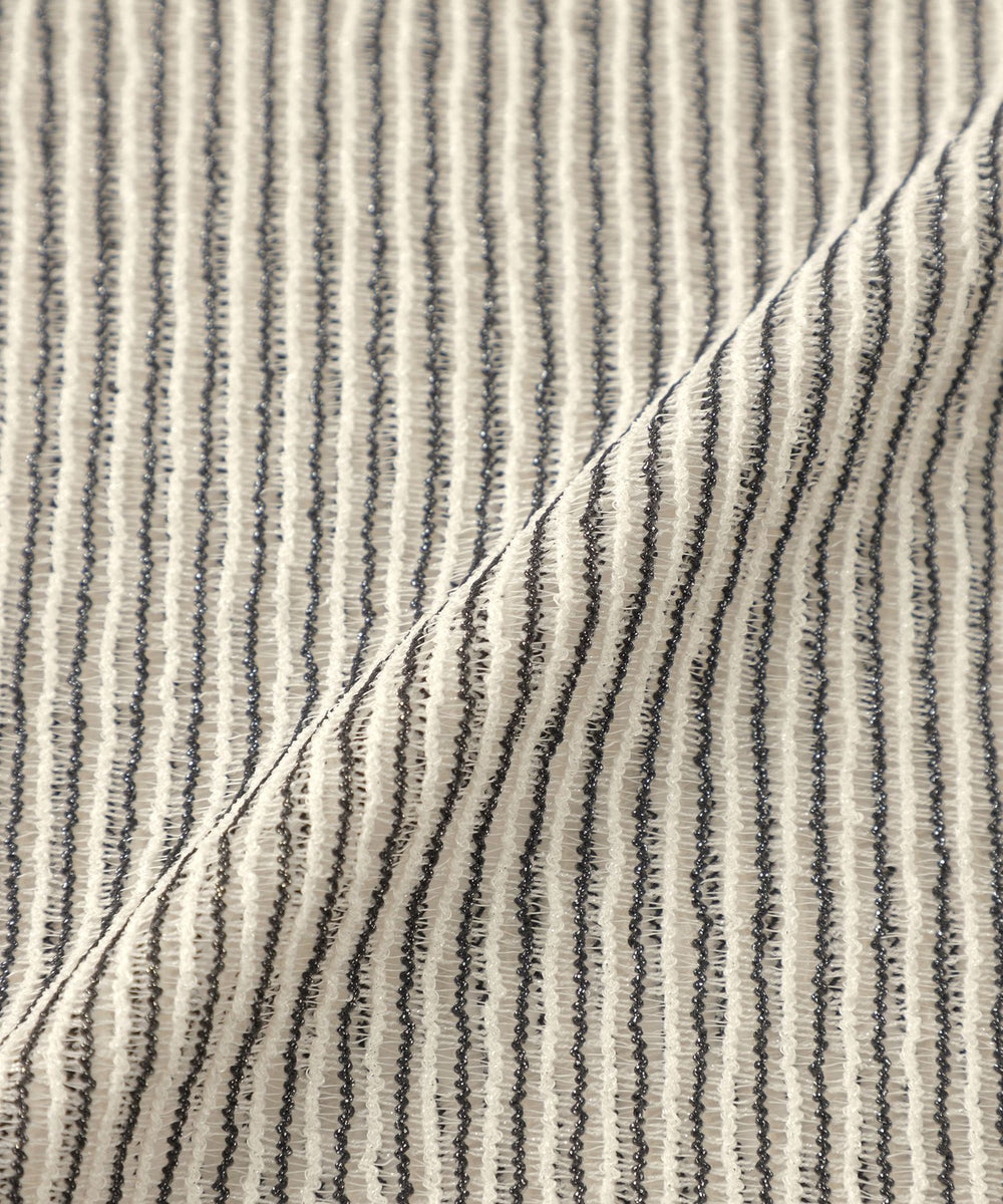 ざっくりとした編地のラッセル素材に箔加工を施し、ナチュラルな素材感に光の角度によって変化する輝きがさりげないアクセントの素材です。