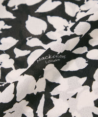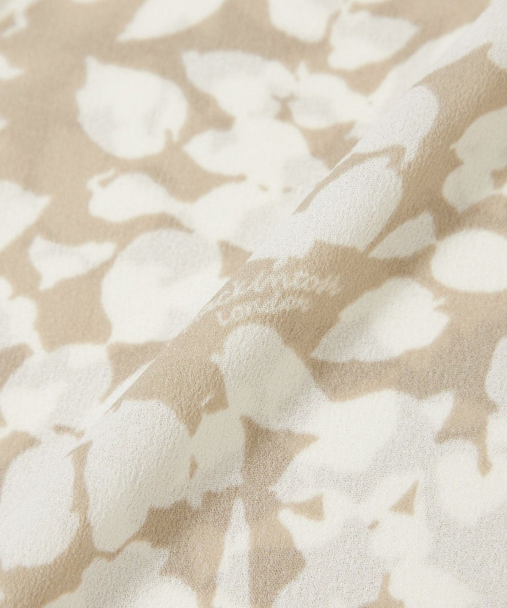 強撚のポリエステル糸を使用し、ちりめんのような表面感とナチュラルなストレッチ性が特徴の素材に、花のシルエット柄をプリントした生地です。