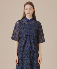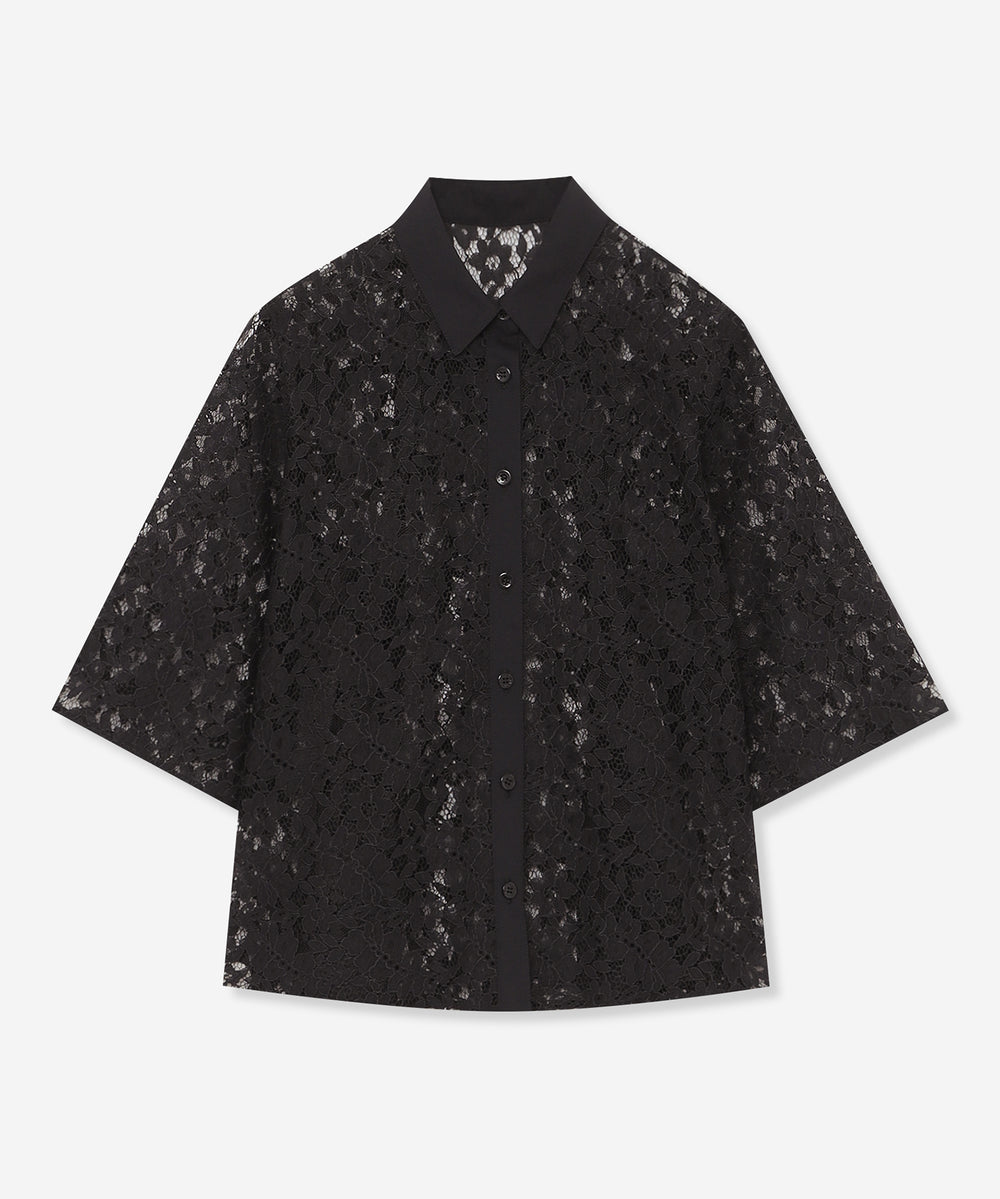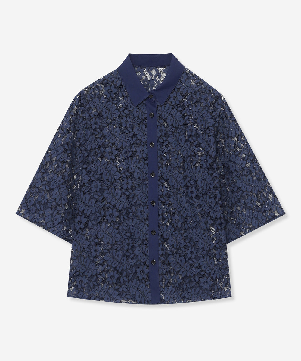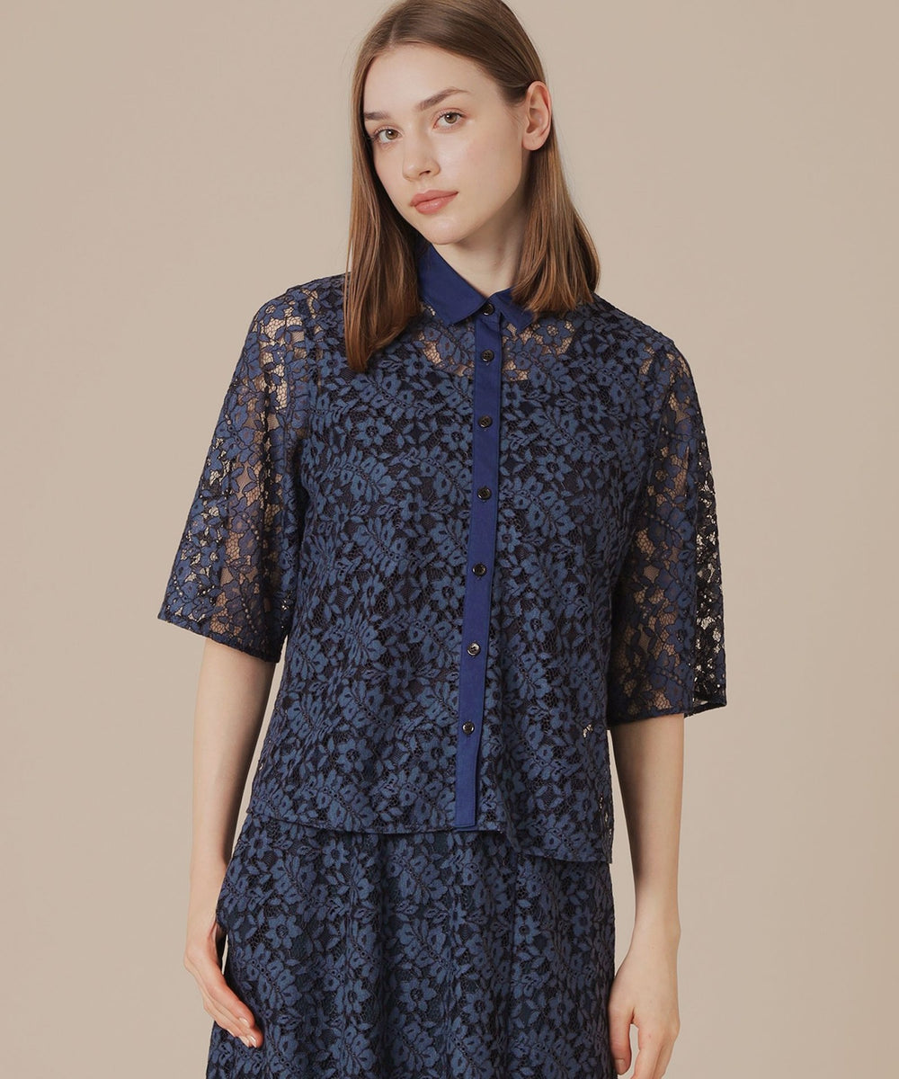 レースの生地で仕立てたシンプルなブラウスです。ゆとりのある五分袖でほど良い抜け感のあるデザインです。デニムに合わせればカジュアルにスカートに合わせればエレガントに、コーディネート次第で異る雰囲気で着用いただけます。同素材のスカート(品番:G7S03615)、ジャンパースカート(品番:G7J03615)もご用意しております。