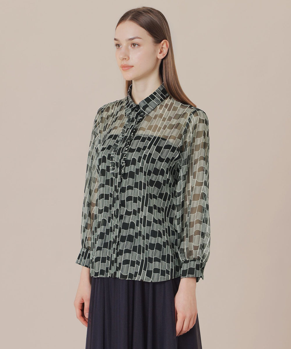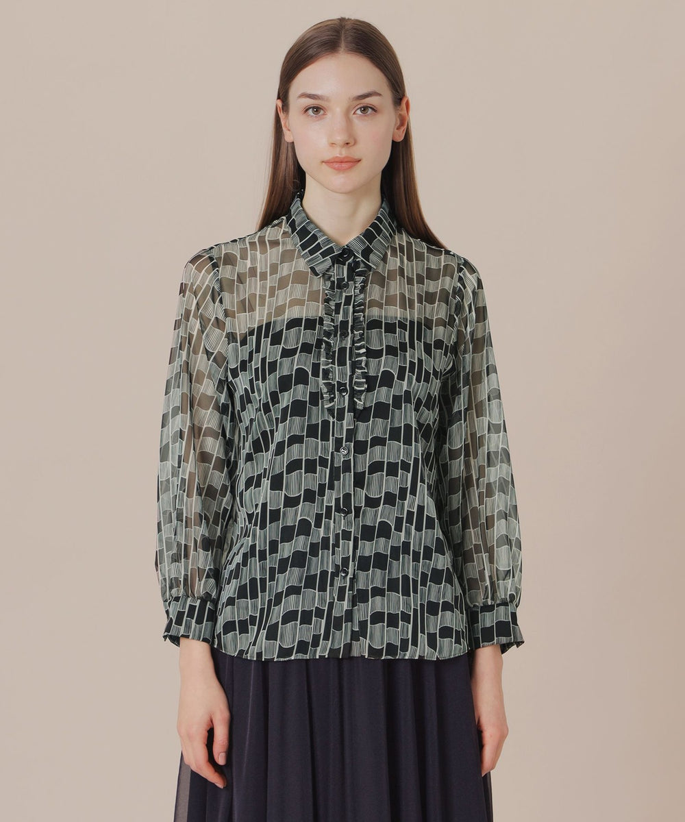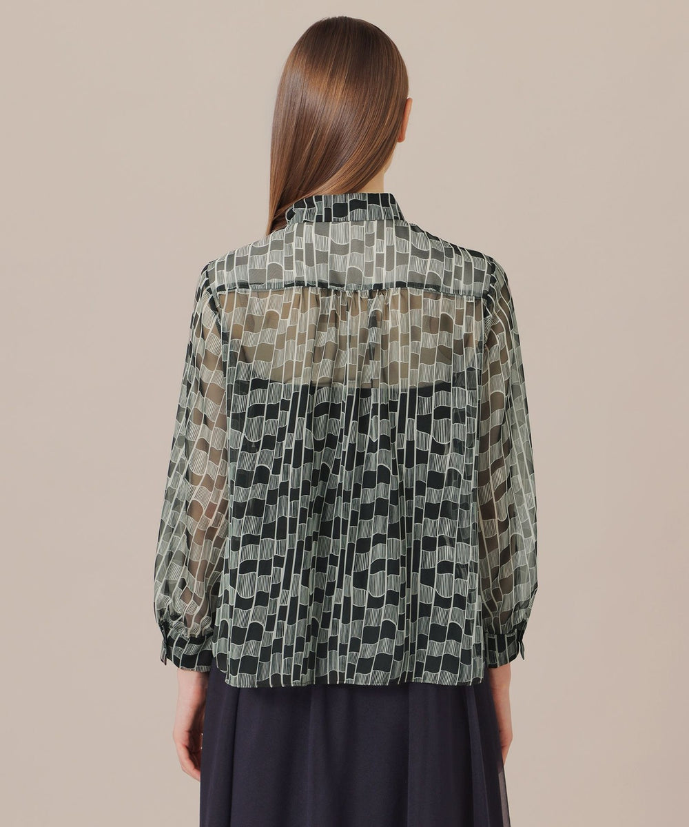 【L】グラフィカルメッシュプリントブラウス