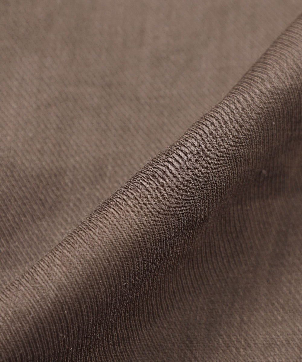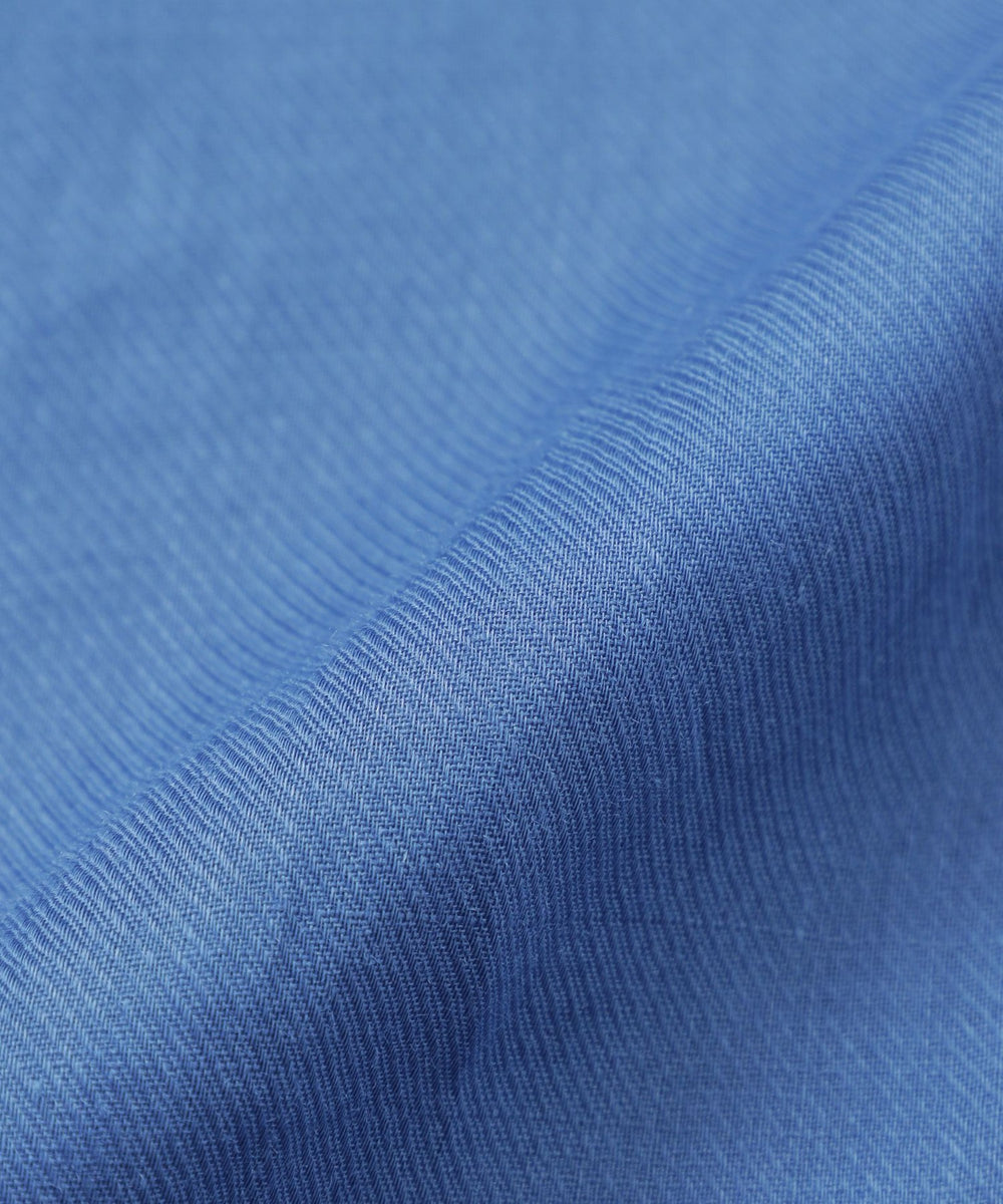 160番の細番手ラミー糸を使用した素材です。細番手ならではの光沢感と繊細な透け感があり、ラミーの程よいシャリ感が肌触りの良さと清涼感を演出しています。