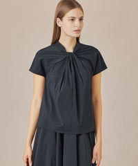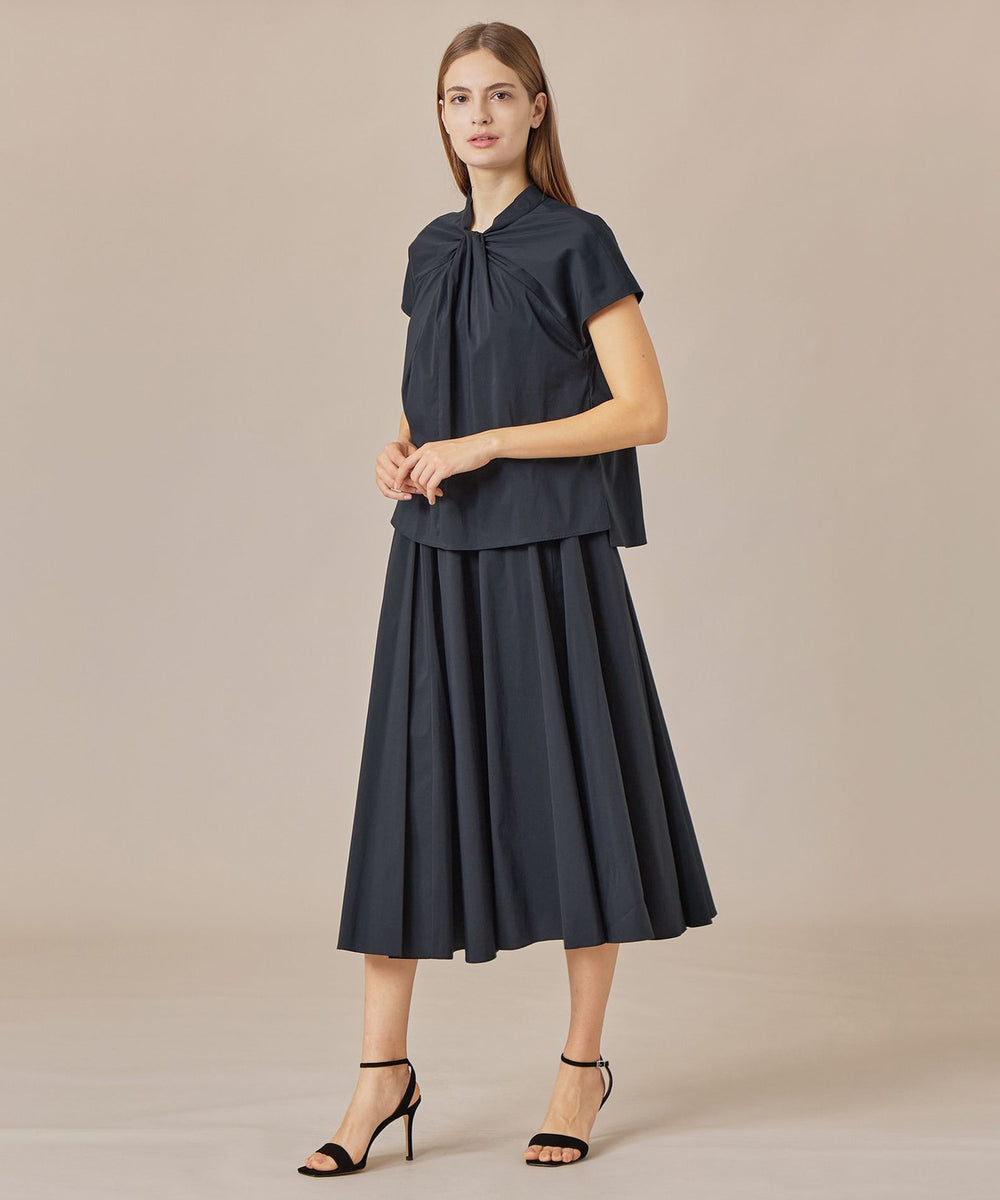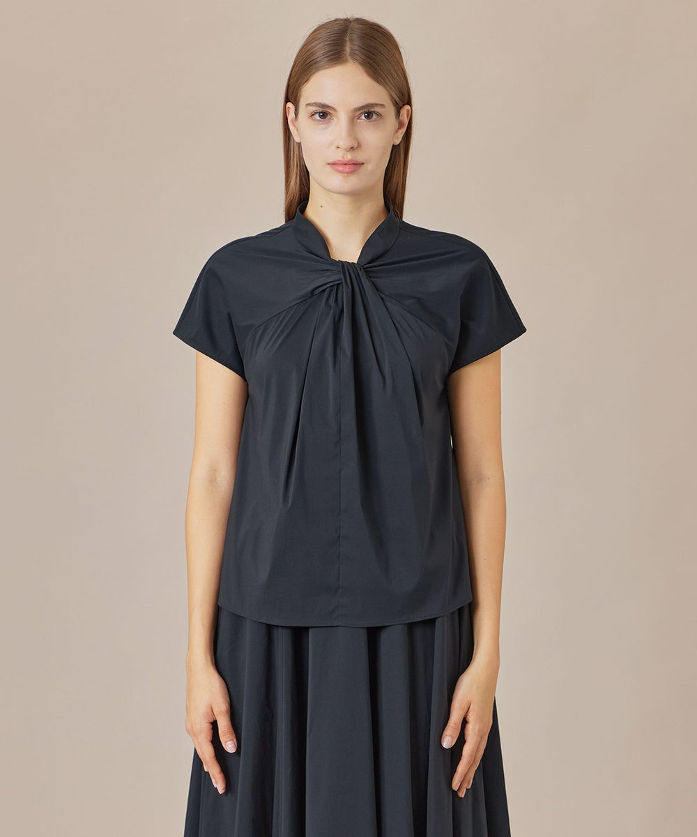 フロントにツイストディテールを施したブラウスです。首元のデザインが華やかにスタイルアップするアイテムです。同素材のスカート(品番:G7S60582)とのセットアップコーディネートもおすすめです。