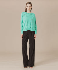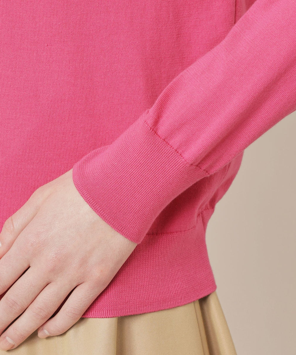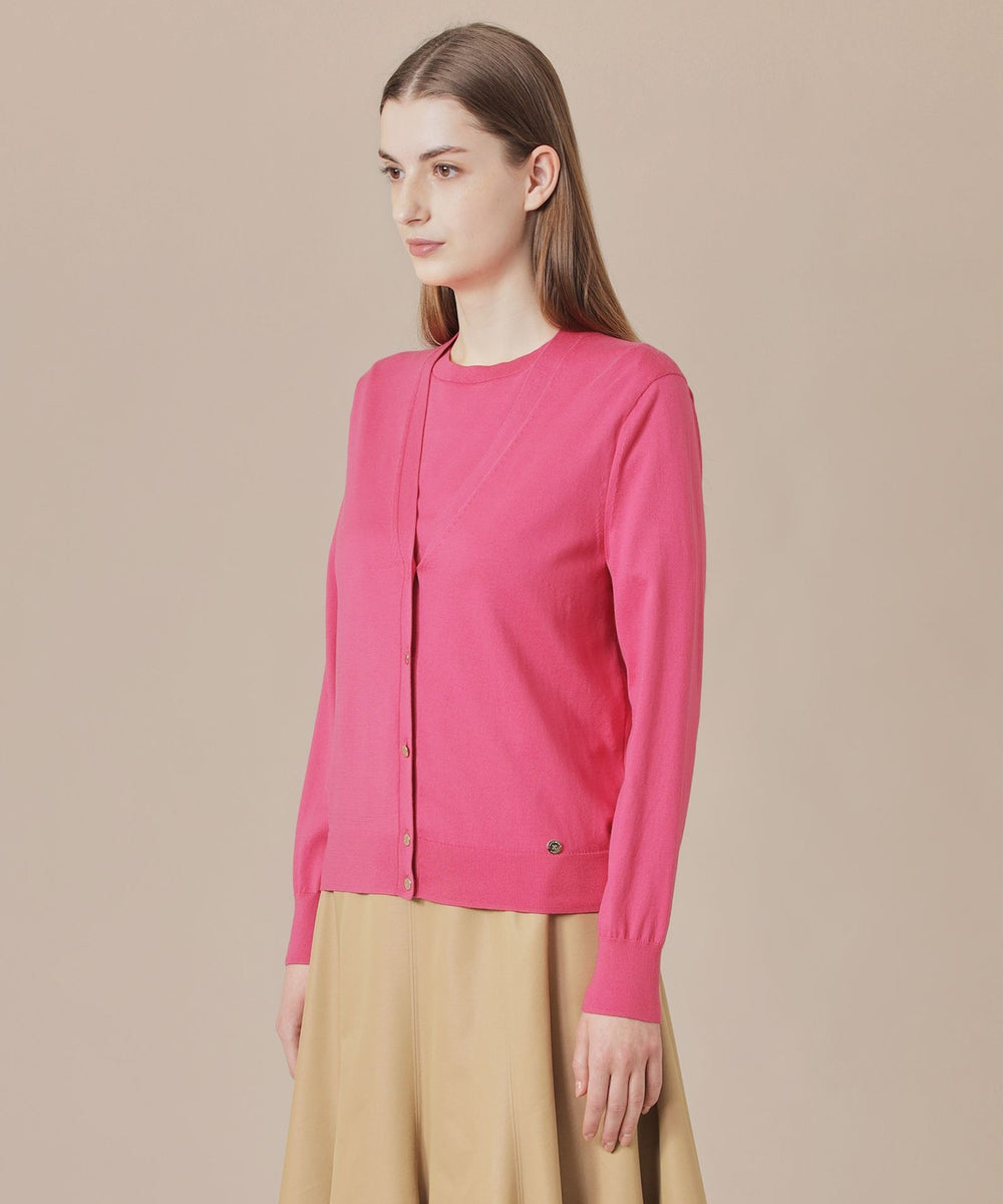 成型編みでバストダーツを入れ、着用時きれいに体にフィットするよう立体的に仕上げたカーディガンです。ミニマルなデザインに金属ボタンがポイントです。同素材のプルオーバー(品番:G7N02500)とアンサンブルで着用いただけます。