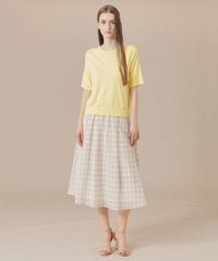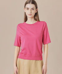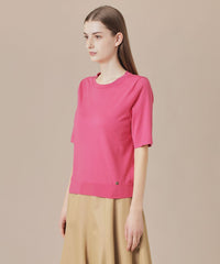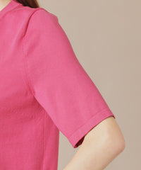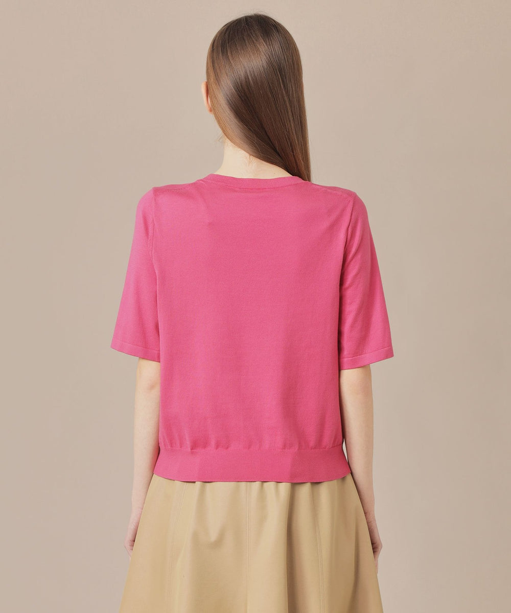 成型編みでバストダーツを入れ着用時きれいに体にフィットするよう立体的に仕上げたクルーネックプルオーバーです。程よくフィットするシルエットと、二の腕を隠す袖丈がポイントです。同素材のカーディガン(品番:G7N01500)とアンサンブルで着用いただけます。