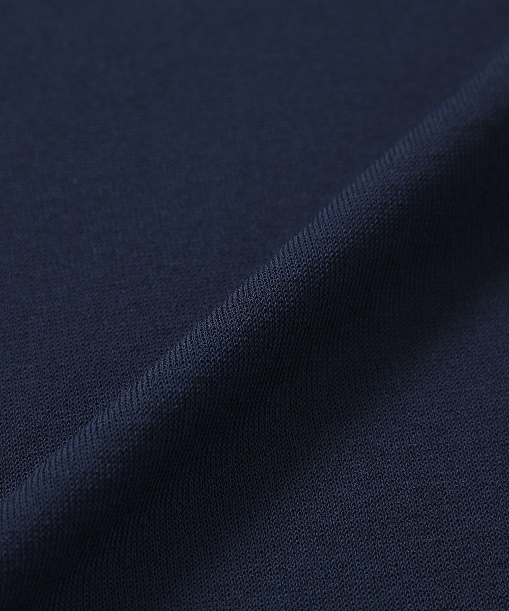 引き揃えたストレッチ糸を芯糸にレーヨンフィラメントをタスキ状に巻き付けたダブルカバーリングヤーンを使用しています。軽さと美しいドレープ性が特徴で、清涼感のある着心地も魅力です。