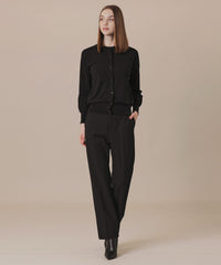 天竺組織のベーシックなクルーネックカーディガンです。前立てを見返し始末でスッキリと、衿・袖口・裾は天竺編みでゆったり仕上げ、シンプルでコーディネートの汎用性が広いアイテムです。同素材のジレ(品番:G7N78685)、リブタートルプルオーバー(品番:G7N84685)、もご用意しております。