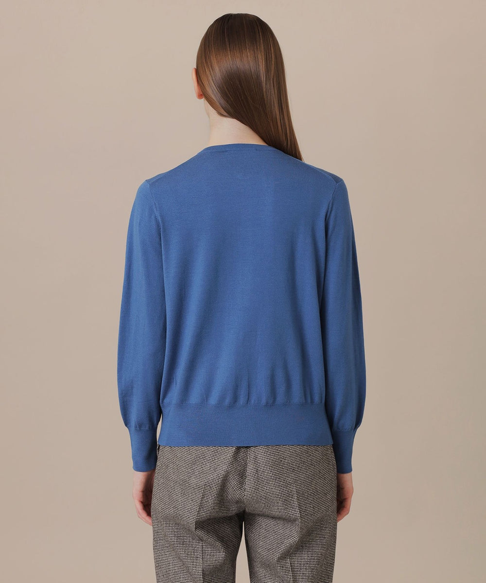 柔らかくしなやかな肌触りと美しい光沢感が特徴の素材です。ウォッシャブルでお手入しやすいニットです。