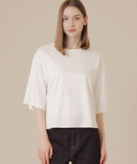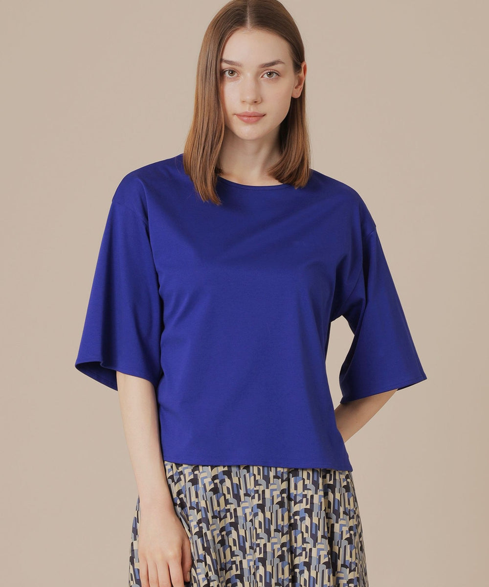 さらっと心地良い肌ざわりのトップスです。ゆとりのあるシルエットで着脱しやすく、涼しく楽におしゃれを楽しんでいただけ、パンツでもスカートでも汎用性高く着用いただけます。同素材のタンクトップ(品番:G7P06665)、ワンピース(品番:G7J01665)もご用意しております。