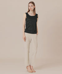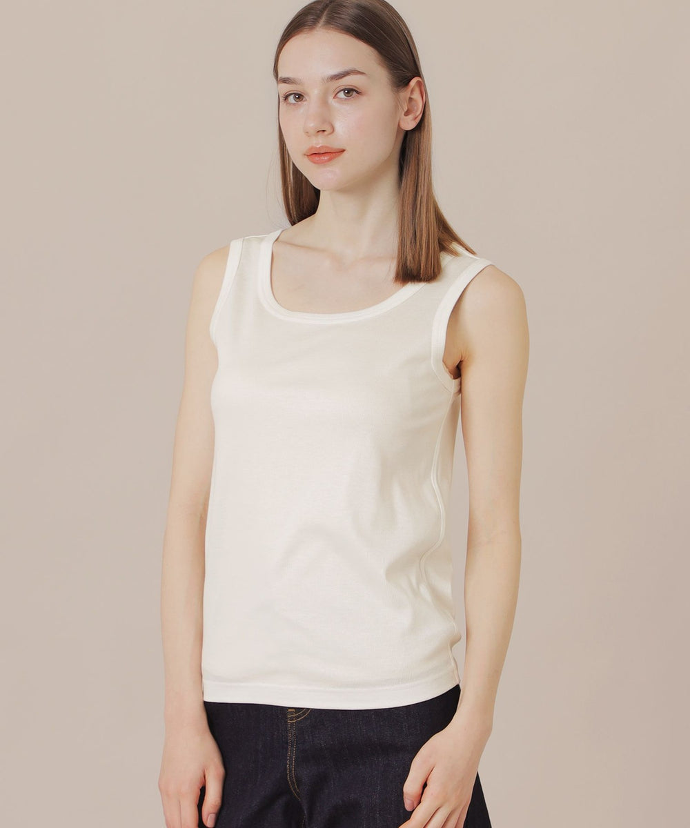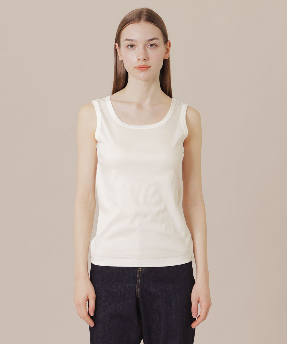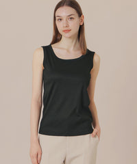 動きやすさと着心地の良さを兼ね備えた、エレガントな表情のタンクトップです。ブランドシグネチャーを光沢のあるプリントで施しタグの背中への肌当たりも軽減しています。素材の光沢感が上品な装いに合わせやすいトップスです。