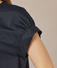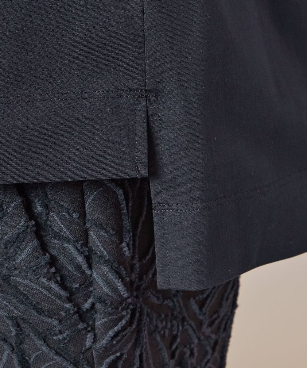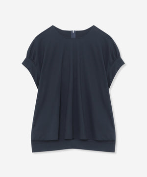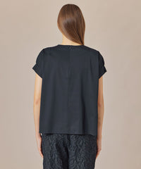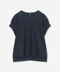 適度なゆとりと素材本来の伸縮性で着心地の良いプルオーバーです。フレンチスリーブに、前後差のある着丈で抜け感をプラスしたデザインです。