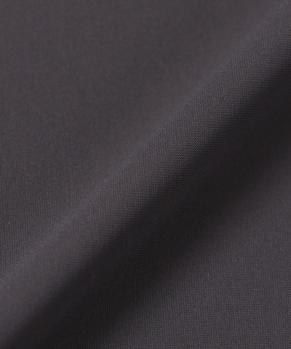 軽量で適度なハリがありサラサラとした風合いのトリコット素材です。自然なストレッチ性で動きやすく快適な着用感も特徴です。また、シワが目立ちにくくリラックス感がありながら、綺麗な見た目でエレガントな表情もあります。