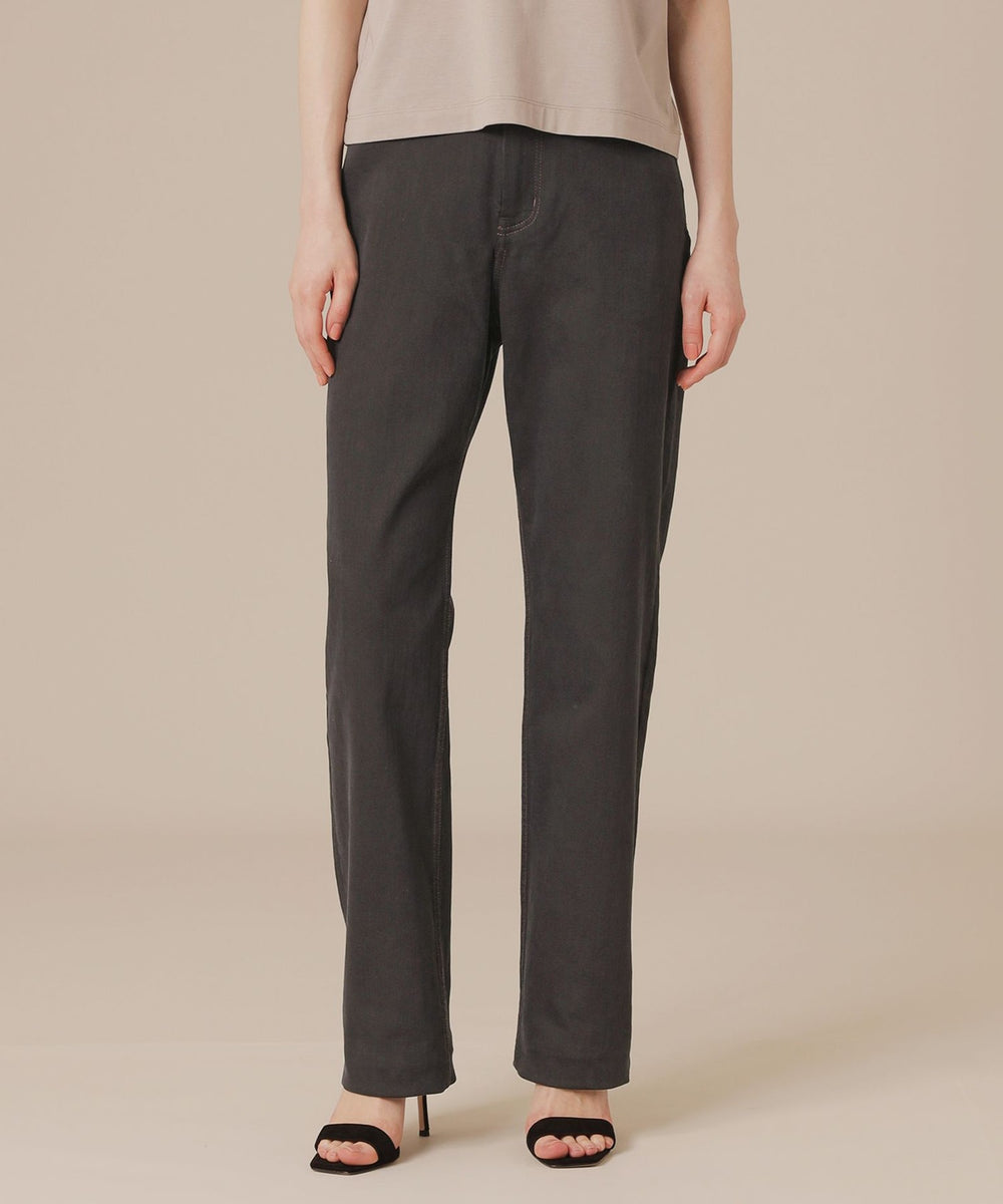 ストレートシルエットのフルレングスパンツです。程よくゆとりのあるスッキリとしたシルエットはラインが綺麗で履き心地もよいアイテムです。オーバーサイズからコンパクトなトップスまで幅広くコーディネートに活躍します。