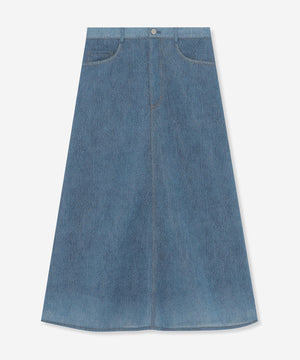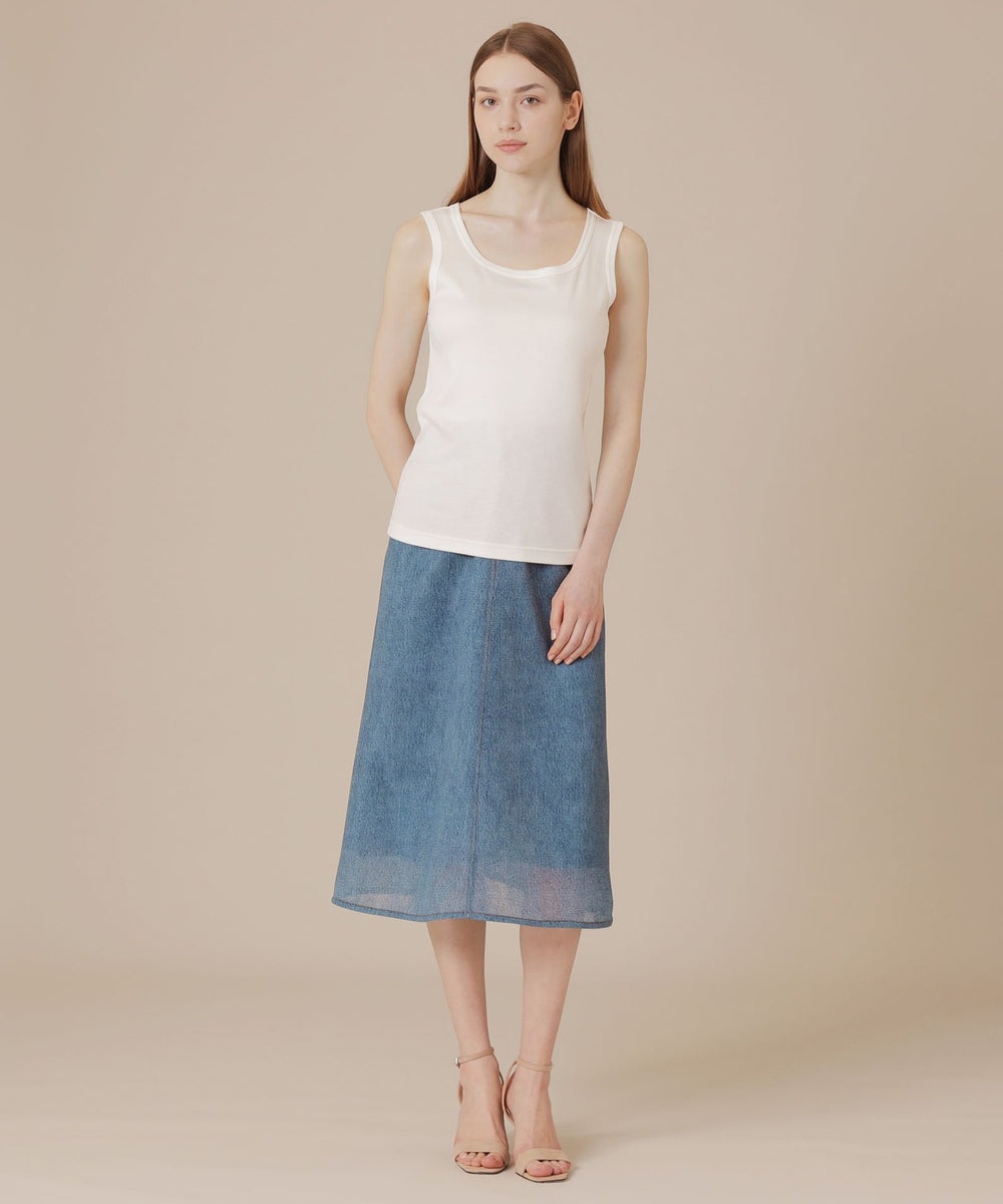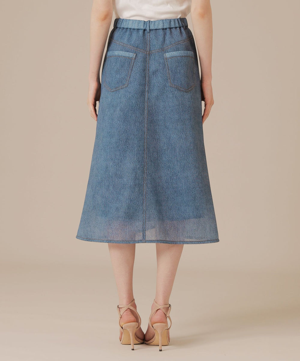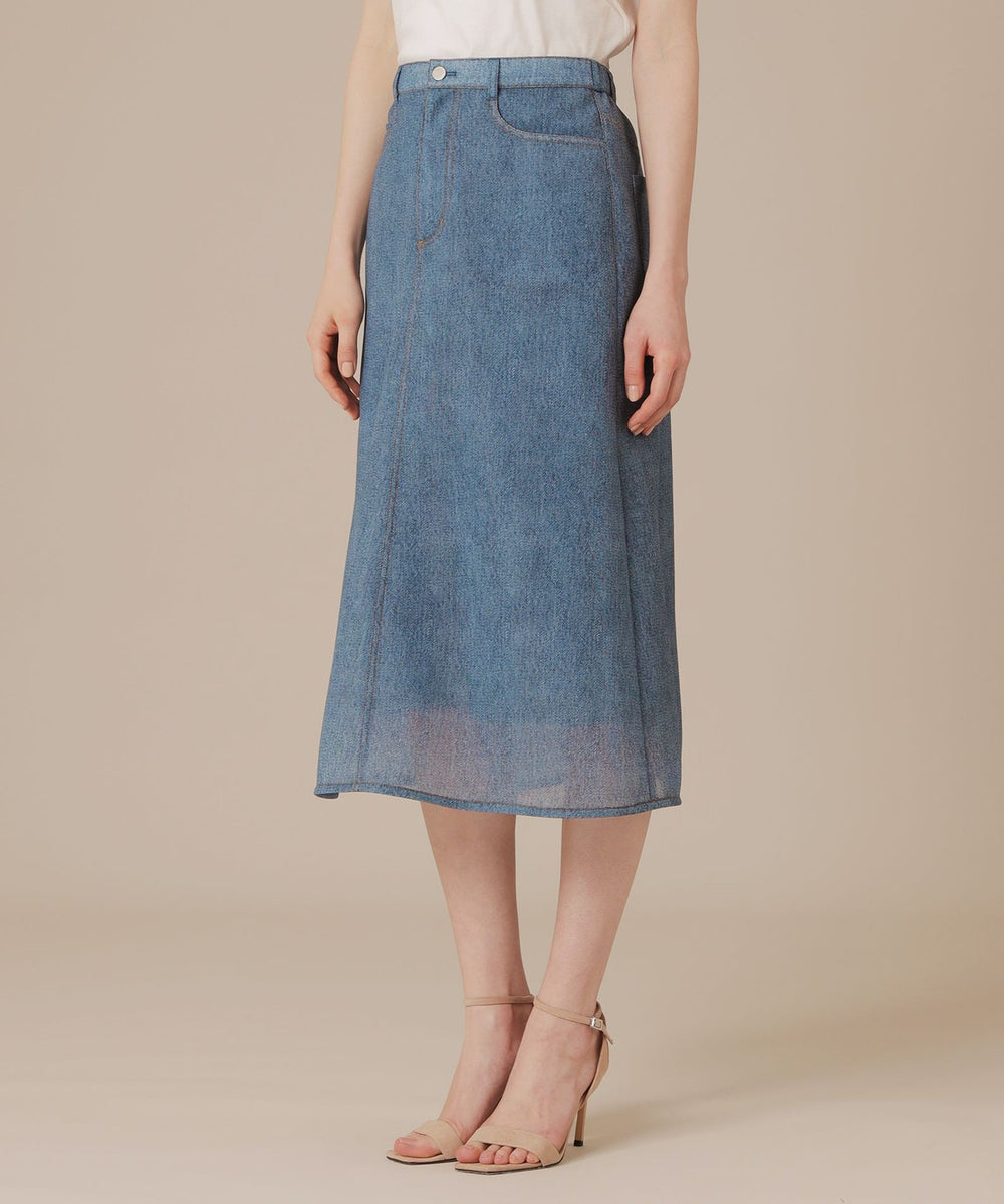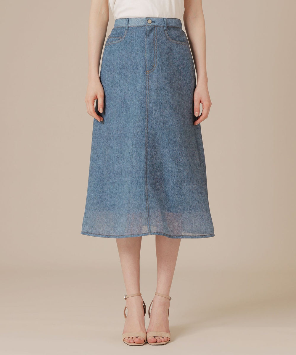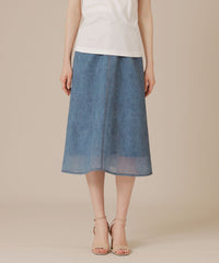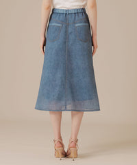 カジュアルな見た目ながらシアー感のある魅力的な素材で上品に、またミドル丈のセミフレアシルエットがリラックスムード漂うスカートです。シンプルなトップスを合わせるだけで様になり、シーズン問わずカジュアルスタイルに活躍するアイテムです。裏地付きです。