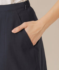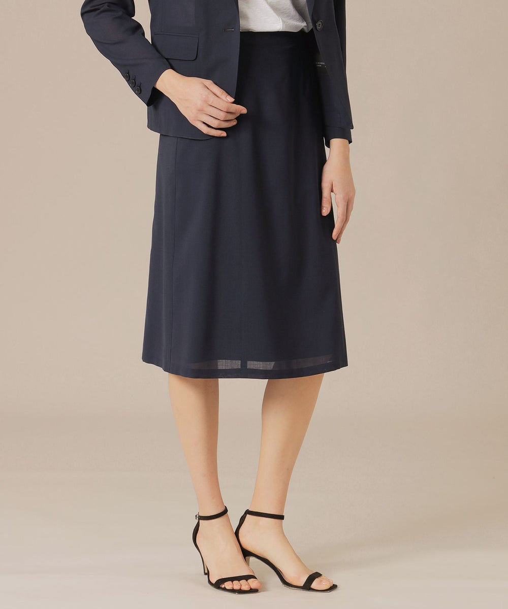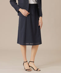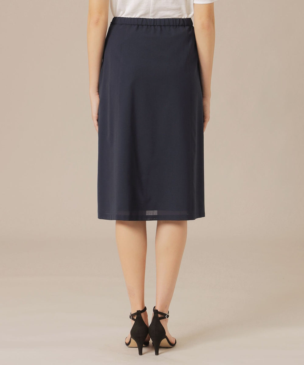 ビジネスシーンにも活躍するストレートシルエットのスカートです。ウエストの後ろはゴム仕様で履き心地が良いアイテムです。裏地付きです。同素材のジャケット(品番:G7E13549)もご用意しております。