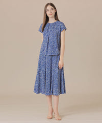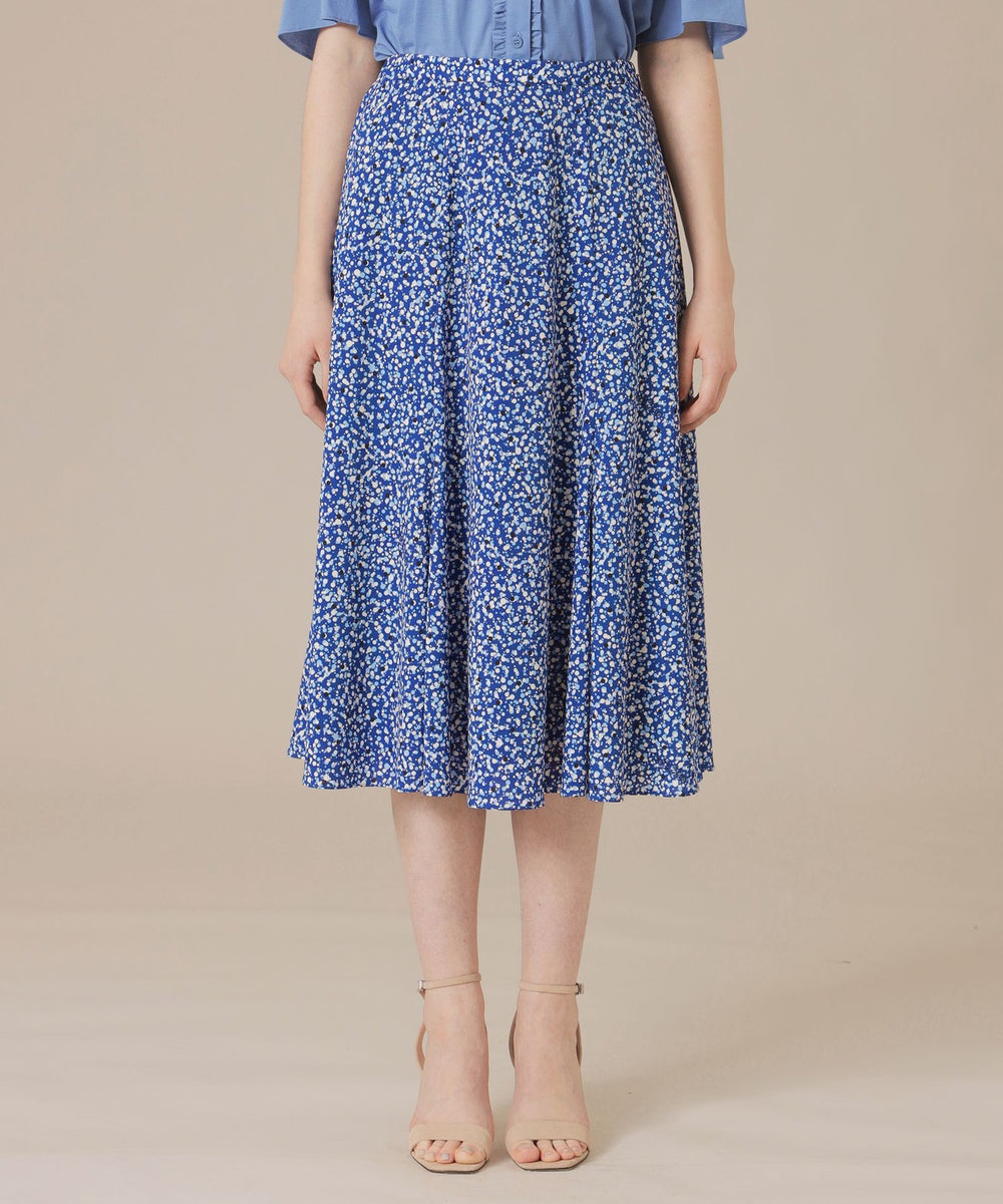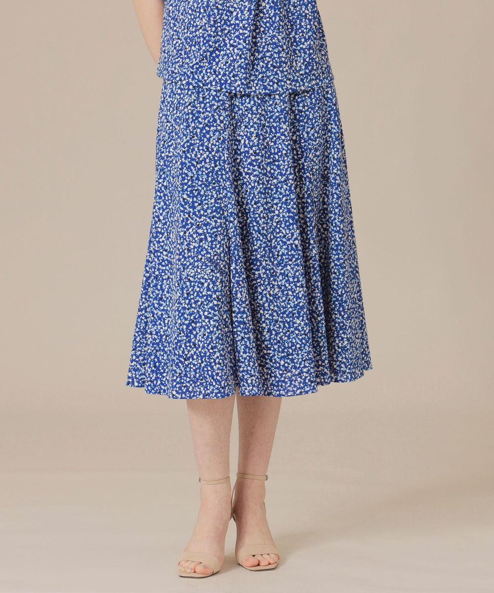 動くたびに軽やかに揺れるシルエットがやさしいフレアスカートです。同素材のブラウス(品番:G7M19547)とのセットアップコーディネートもおすすめです。バックウエストはゴムで穿きやすいアイテムです。裏地付きです。